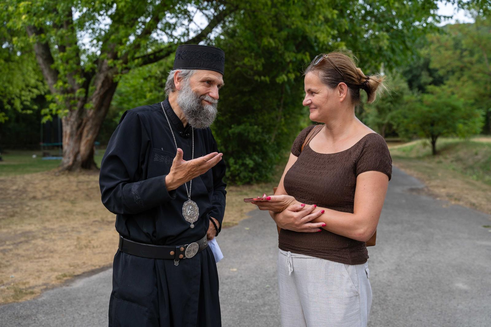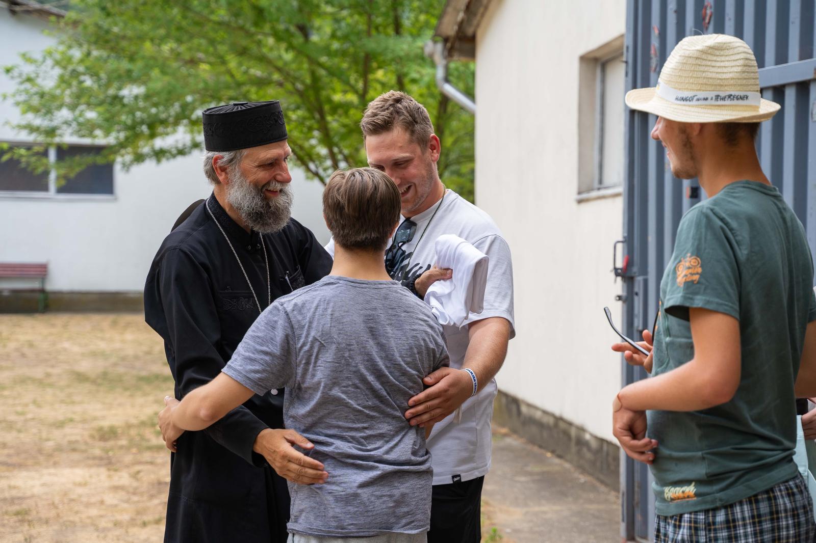 Az ölelések földjén a délután idelátogató Fülöp metropolitának is jutott bőven a szeretetből. A motorral érkező főpásztor a másnap várható görögkatolikus motorosok előőrseként érkezett. Szoros programja mellett szakított időt arra, hogy jónéhányukkal elbeszélgessen, és egy Alleluja dallamot tanítson meg a lelkesen együttműködő gyerekeknek. Az idei év üzenete még szorosan a szinódushoz kapcsolódik, s én elviszem a pápának a gyerekek üzenetét: és az nem más, mint hogy mindenkit meg kell hallgatni! – összegzi látogatását Fülöp atya. Arra kell törekednünk mindannyiunknak, hogy nyitottak legyünk, s hála Istennek ez nagyon régóta megvan a fiataljainkban, akik sokan és jó szívvel jönnek el ide. Vannak néhányan (főleg fiúk), akik először vonakodva jönnek, a párjuk szeretne nagyon segíteni, ők pedig rábeszélésre érkeznek. Végül megtapasztalják, hogy mennyire jó ebben részt venni, és most már lelkesednek érte. Több ilyen esetről tudok, akik itt érzékenyültek ebben a táborban. A jövőre tekintve pedig folyamatban van egy kezdeményezés alapján felnőtt fogyatékosok nyaraltatásának átgondolása is. A Szent Lukács Szeretetszolgálat intézményünk segítségével megpróbáljuk kiszélesíteni ezt az évtizedek óta önkéntesen működő, jó gyakorlatot. Újra és újra felmerül bennünk, de egyelőre még csak álmodozunk arról is, hogy a legjobb az lenne, ha lehetne az egyháznak egy saját táborhelye is! – zárja gondolatait Fülöp atya.