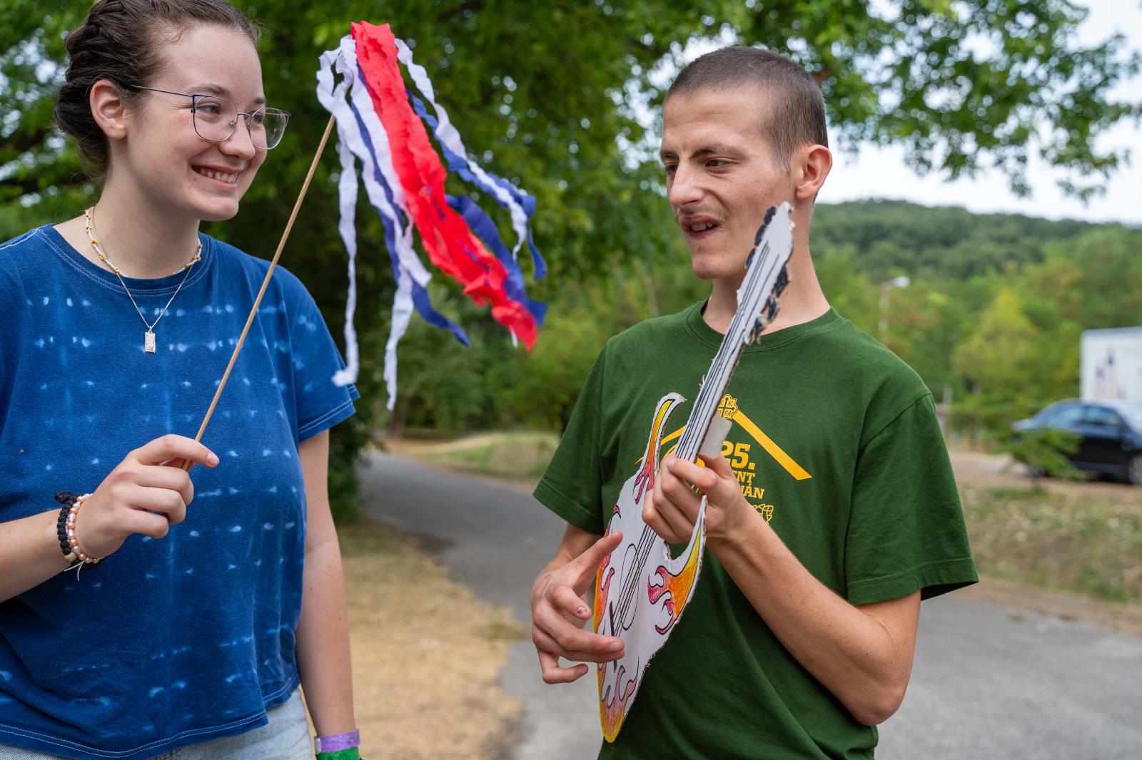Különleges az a helyzet, amikor egy testvérpár egyik tagja segítőként, a másik táborozóként van jelen. Ilyen több is akad itt. Marcsi (19 éves, segítő) először csoportvezető, de harmadjára van itt. Az ő csoportjában van Gergő, akivel annak idején óvodai csoporttársak voltak, most mint táborozó és segítő töltenek együtt egy hetet. Gergőnek (20 éves) egyébként ez a 17. tábora, nővérének Johannának segítőként szintén!