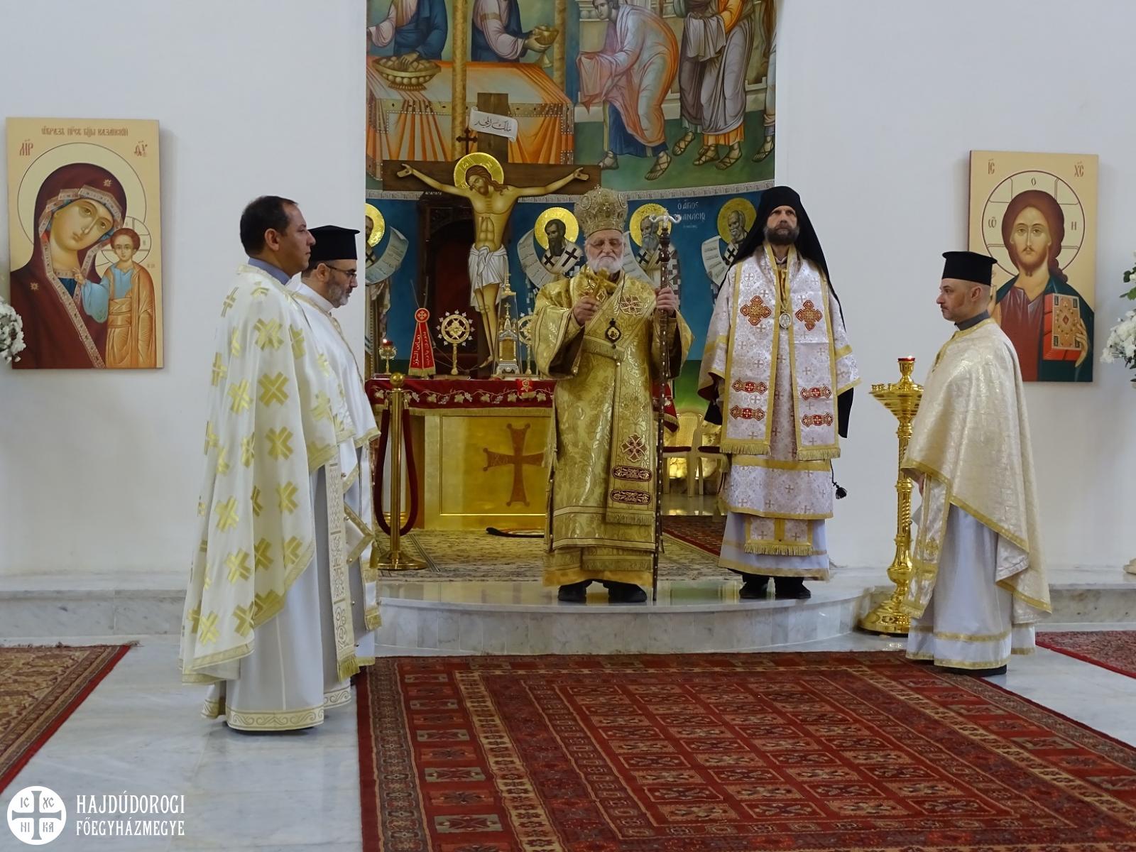 A pátriárka kint ült a királyi ajtó előtt, s mikor meglátta Fülöp atyát, neki is odahozatott maga mellé egy széket. Meghívta koncelebrálásra is, így együtt végezték még másik három pappal együtt a Szent Liturgiát. A celebrációban gyönyörű elemeket láthattunk. Közel húsz ministráns fiú és leány állt készen a szolgálatra szép fehér ruhába öltözve. Mindannyian részt vettek a kis és nagy bemenetben, kereszttel, ripidionnal, zászlókkal, mécsesekkel a kezükben. Látszott, hogy nem mindnyájan rutinosak a mozgásban, de a nagyobbacskák segédkeztek a kicsiknek, hogy el ne tévedjenek a nagy vonulásban. Ugyanis az egész templomot körbejárták vele, mindkét alkalommal. Kedves jelenet volt még, hogy az Evangélium olvasása közben nem csak ezek a fehér ruhás ministránsok állták körbe az olvasóállványt, de gyakorlatilag az összes templomban lévő gyermek odasereglett, és tátott szájjal hallgatták, amint a pátriárka – korát meghazudtoló – erőteljes hanggal énekelte az Evangéliumot.