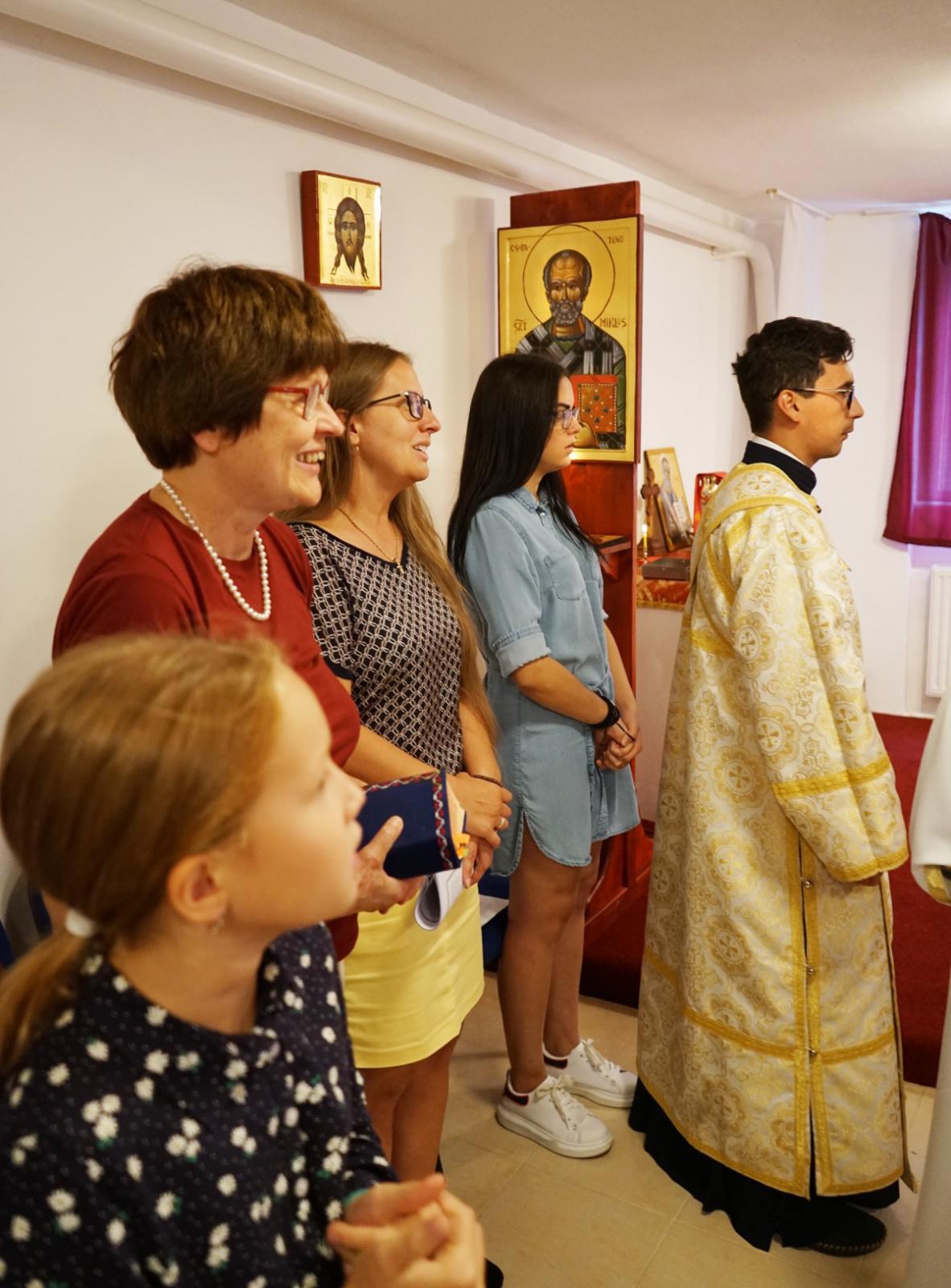 A kápolna megáldása és a liturgia után az iskolába induló gyermekek, szüleik és a pedagógusok is gyönyörű imádságos áldásban részesültünk. Természetesen a jó hangulatú agapé sem maradhatott el. Együtt fogyasztottuk el a húsmentes ételeket beszélgetések közepette. A gyerekek is jól szórakoztak a hittanteremben színezgetve, rajzolgatva vagy épp a nagy udvaron szaladgálva, játszva.