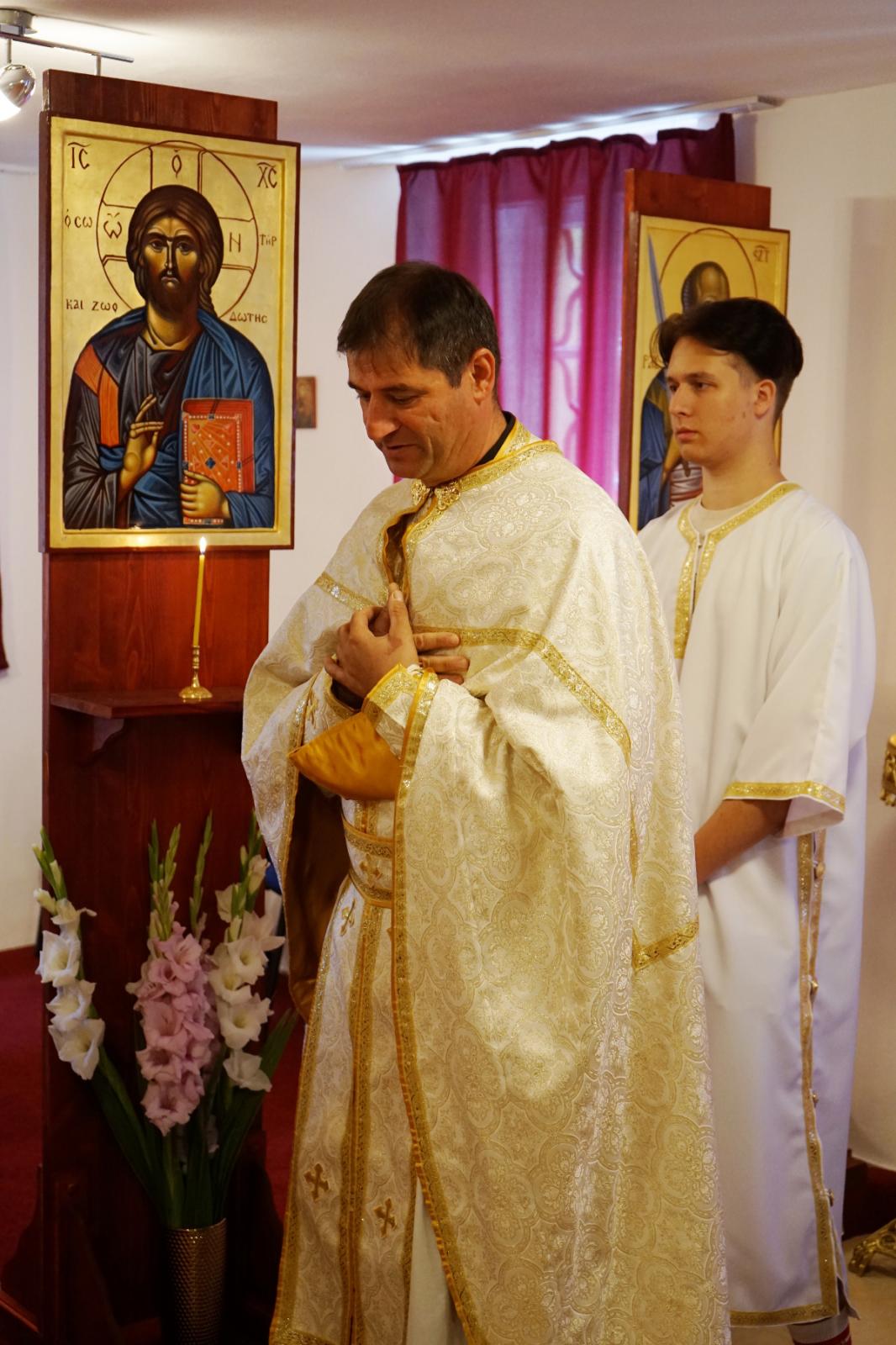 Fülöp metropolita atya érkezett hozzánk, hogy megáldja az elkövetkezendő szertartásaink új helyszínét és elhelyezze az Antimenziont. Utrenyénk és liturgiánk fényét emelte jelenlétével és közreműködésével a közösségi életünk szerves részévé vált püspök, amiért messzemenően hálásak vagyunk az Úrnak és Fülöp atyának is. Prédikációjában párhuzamot vont a menyegzőre - és a mai meghívottak helyzetével. Tanítása tiszta és érthető volt mindenki számára.