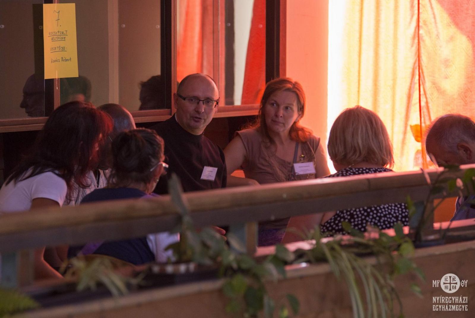Dúl Géza atya a Váci Egyházmegye cigánypasztorációs referense és a Ceferino Ház megálmodója a szentségi házasságról, a házasság szentségéről beszélt előadásában. Cigánytestvérek között folytatott áldásos tevékenysége révén ismeri a roma hagyományokat, azok logikáját. Ezeket vetette össze a szentírási szakaszokkal, melyek a házasságra, nő és férfi kapcsolatára vonatkoznak, megválaszolva a kérdést: mi többletet adhat a házasság szentsége a szép roma hagyományok mellett a roma embereknek. Hiszen a házasság szentségével Isten tervébe csatolja be az embert: a szentségben jelen van Jézus a házastársak között, a férj és feleség Isten munkatársaivá válnak az élet szolgálatában és felelősekké válnak környezetükért.