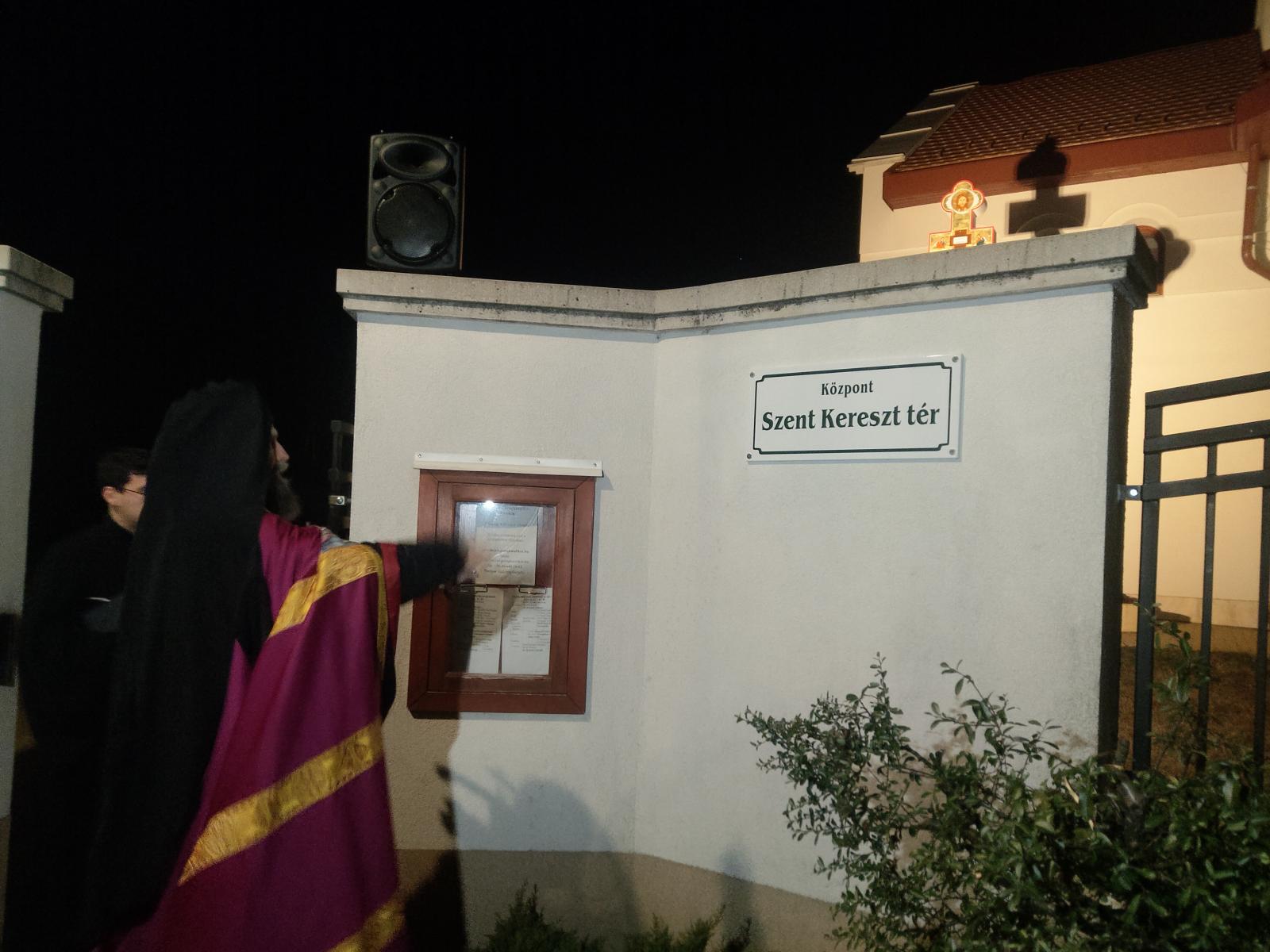 Az ünnepségen tudatosodhatott bennünk, egyházközségi hívekben, hogy ennek a keresztelőnek a jelentősége túlmutat azon, hogy a térre kikerül néhány új utcanévtábla, ami így a templomhoz hasonlóan immár a Szent Kereszt nevét fogja viselni. Vannak egészen profán, praktikus okai is a névadásnak. Például, hogy a templomot könnyebben meg lehessen találni. Vagy, hogy a kisebbségben lévő görögkatolikus közösség ilyen módon is lenyomatát hagyja a városon.