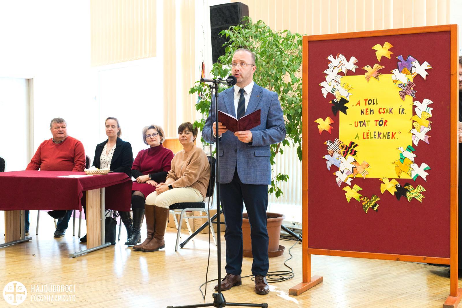 „Olyan kitartás és egyedi csoda, belső világ lakozik bennetek, amit ma a betűk formájában mindenki láthat. Ne feledjétek: a papír a ti színpadotok, a tollatok a hangszeretek, minden egyes kerekített betű egy-egy vallomás arról, hogy értékesek és ügyesek vagytok” – bíztatta a versenyzőket az intézmény vezetője.