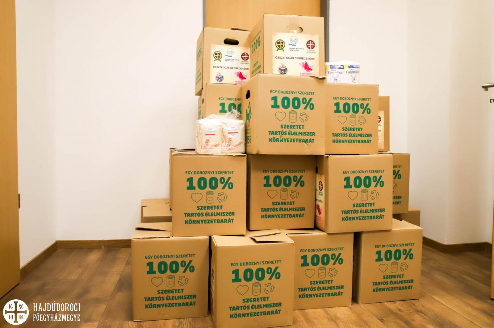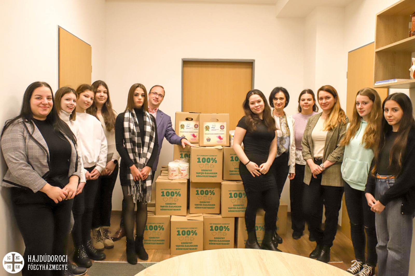 Mind az Érseki Hivatal, mind a debreceni iskoláink: a Szent Efrém Görögkatolikus Óvoda, Általános Iskola és AMI, a Szent László Görögkatolikus Gimnázium és Technikum, a Szent Bazil Görögkatolikus Gimnázium, Technikum, Szakképző Iskola, Szakiskola és Készségfejlesztő Iskola debreceni telephelyei, mind a Szent Péter és Pál Görögkatolikus Gyermekvédelmi Központ, valamint a debreceni görögkatolikus parókiák is bekapcsolódtak a gyűjtésbe. Közel 40 szeretetdobozt tudtak így megtölteni, elsősorban tartós élelmiszerekkel és alapvető higiéniai termékekkel. A több mint 350 kg adományban a liszt, cukor, étolaj, tej, rizs, száraztészta, húskonzerv mellett sok édesség is helyet kapott.