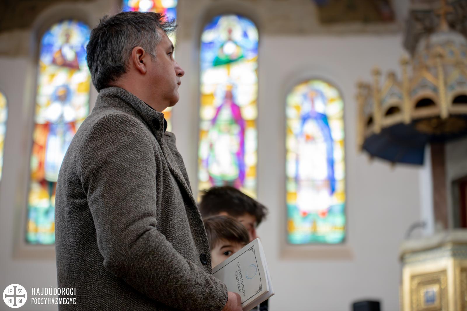 Viszont arra is figyelmeztetett Fülöp atya, hogy mit tegyünk, ha nem találjuk magunkban a szeretetet. Ha nehéz a szolgálat és hiányzik Isten, akkor ne legyünk restek elmenni a Szent Liturgiára. Hívásának engedelmeskedve hagyjuk, hogy Isten egyesüljön velünk. „Lám, micsoda szoros kötelék van az Isten odaajándékozása és a szolgálat között. Nagycsütörtök, nagypéntek, de talán még inkább a nagyszombat után következő feltámadás változtassa meg életünket!” – fogalmazta meg befejezésül az előttünk álló feladatot a metropolita.