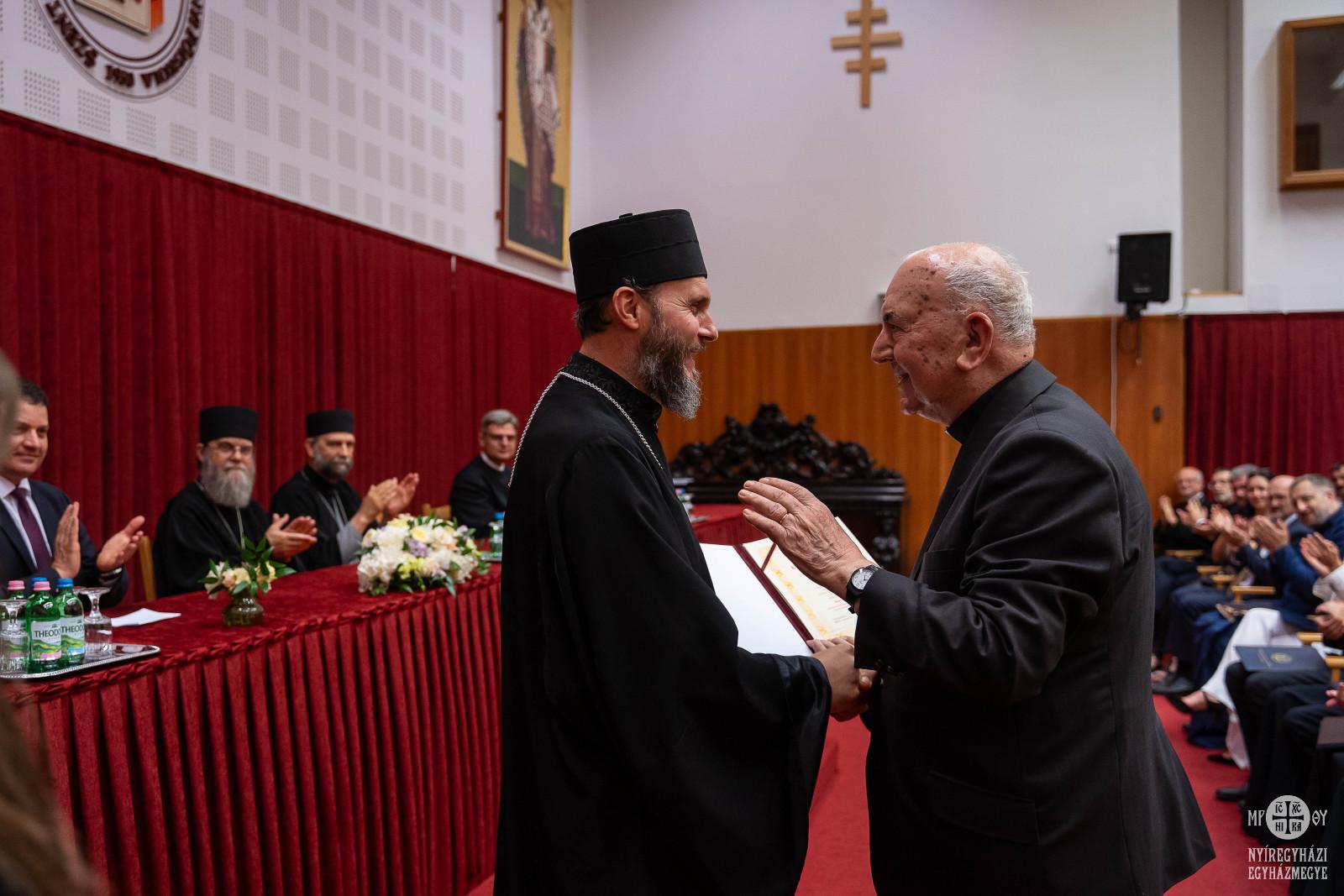 Ebben az évben egy gyémántdiplomát adtunk át a hatvan évvel ezelőtt végzett Janka György atyának. György atya 1963-ban végzett főiskolánkon, s még ebben az évben november 17-én szentelték pappá Nyíregyházán. Fiatal papként először Hajdúböszörményben, majd Nyírvasváriban teljesített segédlelkészi szolgálatot, majd 1970-től 44 éven keresztül szolgált a makói egyházközség parókusaként. A Nyíregyházi Egyházmegye főpásztoraként Ábel püspök köszöntötte György atyát, akinek egy díszoklevelet nyújtott át.