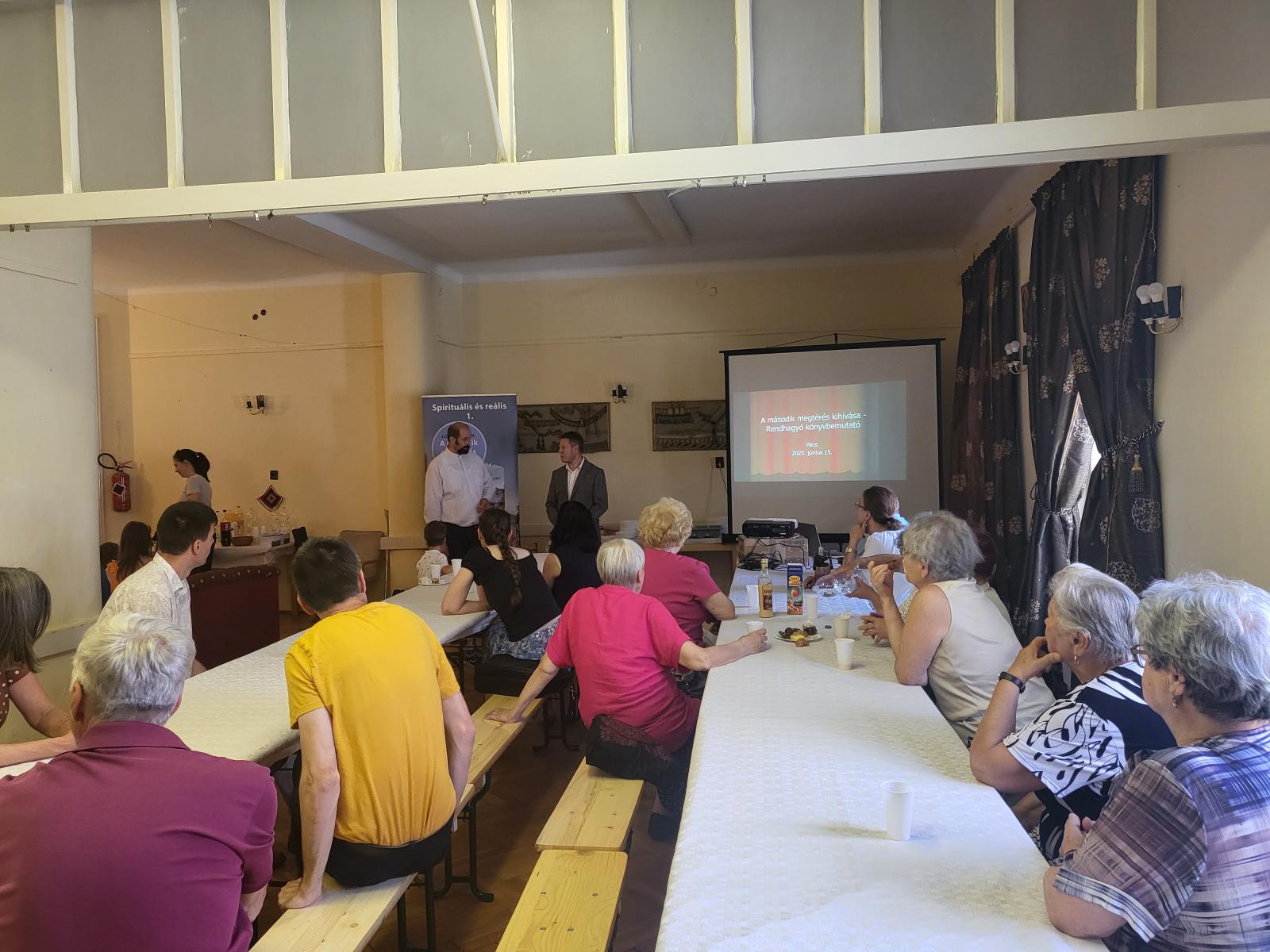 Listár István mutatta be A második megtérés kihívása című könyvét, majd válaszolt a jelenlevők kérdéseire. A szerző amellett, hogy a közösség jelenlevő családjait a kötet egy-egy példányával megajándékozta, őszinte, személyes élményen alapuló vetített előadásával mély, gondolatébresztő perceket szerzett hallgatóságának. Az inspiráló előadás hatására a terített asztal mellett a könyv kapcsán beszélgetések, tanúságtételek hangzottak el.