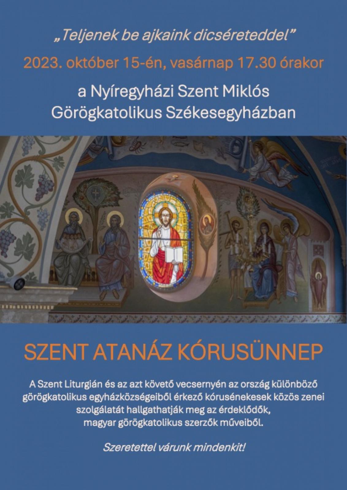 A Szent Liturgián és az azt követő vecsernyén az ország különböző görögkatolikus egyházközségeiből érkező kórusénekesek közös zenei szolgálatát hallgathatják meg az érdeklődők, magyar görögkatolikus szerzők műveiből. Szeretettel várnak mindenkit!