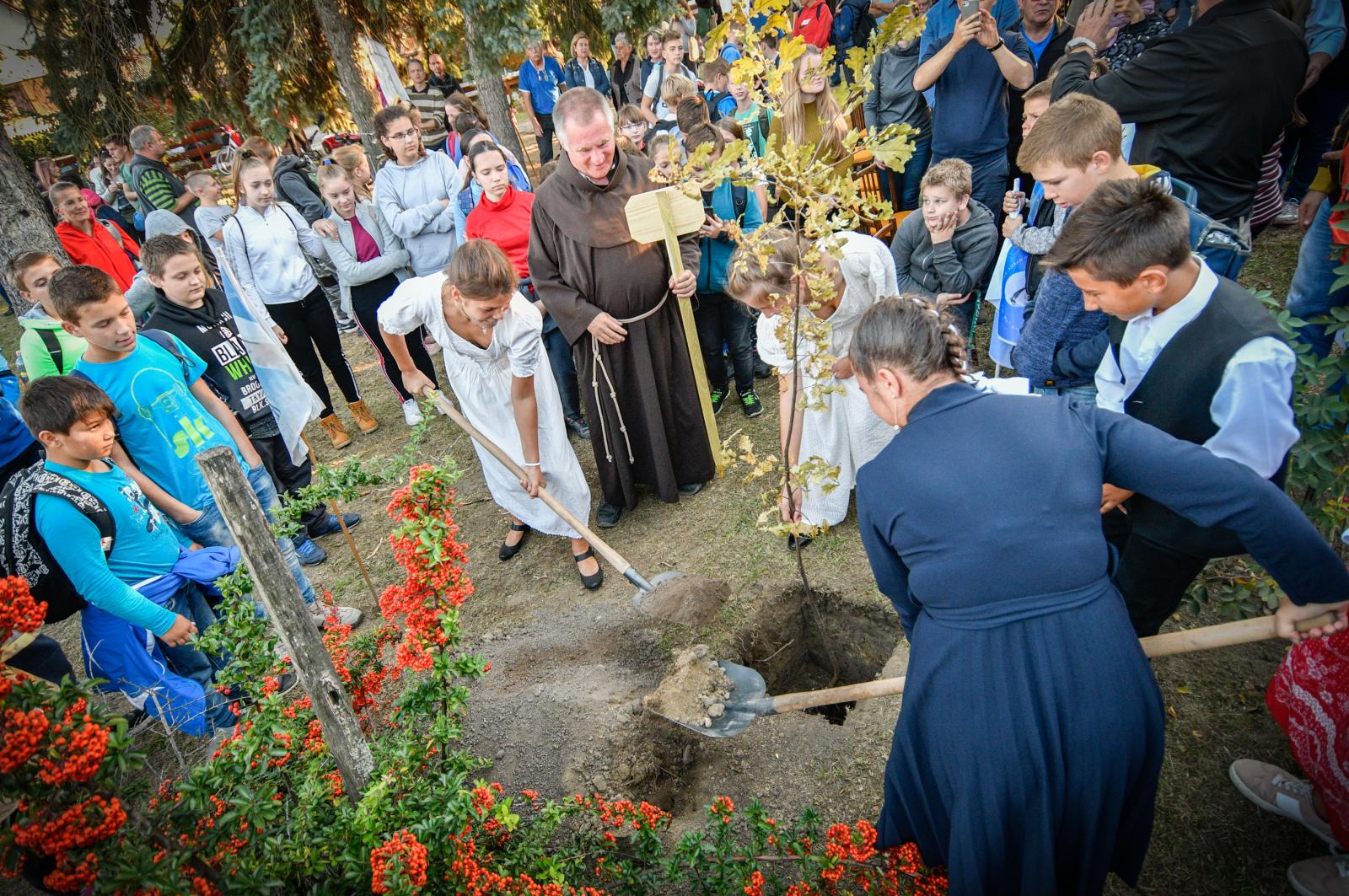 Akkor abban maradtunk, hogy a gyermekek érkezésének és Böjte Csaba ismételt látogatásának időpontját a Bocskai-csata évfordulójának napja köré tervezzük. Szinte napra pontosan, 415 éve volt a csata. A Székelyhídról indult zarándoklat megállt az emlékműnél, azt megkoszorúztuk, és utána folytattuk a 16 kilométeres menetet, a zarándokutat – fogalmazott az egyik szervező, Papp Gyula, majd elmondta, hogy Csaba testvér ki is nyilvánította: egy év múlva eljönnek, és megnézik, hogyan fejlődött az a kis fa, amelyet a zarándoklat tiszteletére ültettek a Kölcsey-ház udvarára.