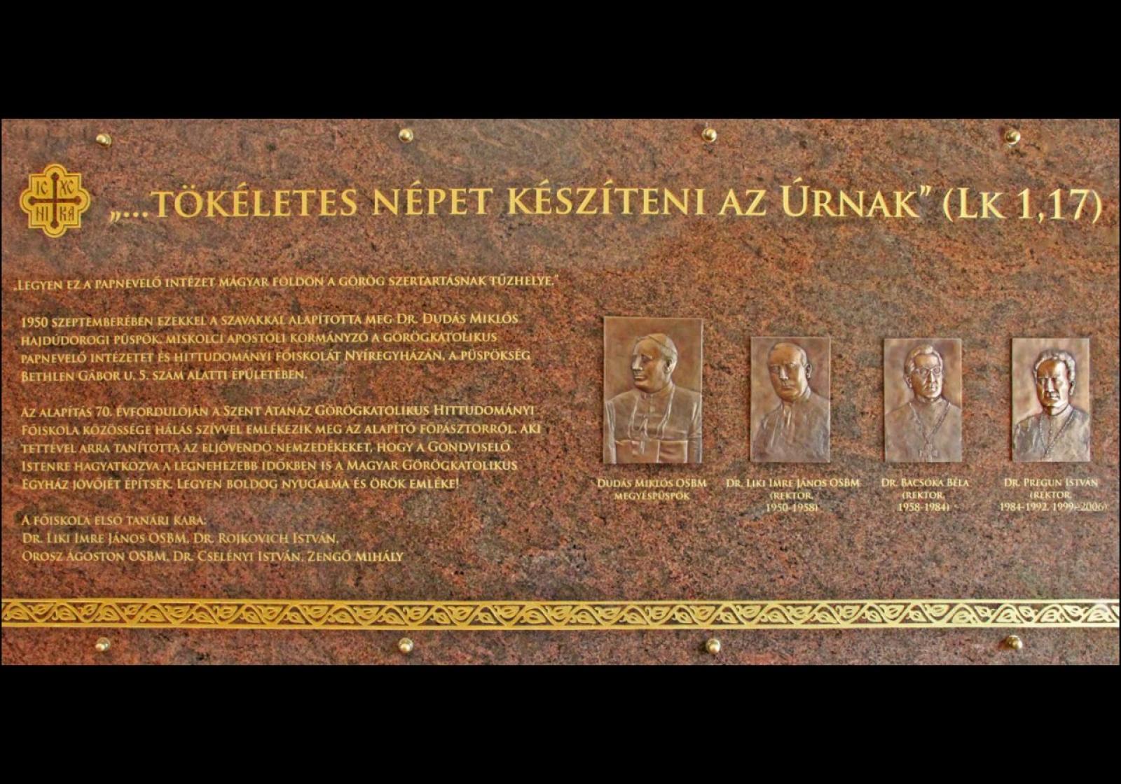 "1950 szeptemberében ezekkel a szavakkal alapította meg Dr. Dudás Miklós hajdúdorogi püspök, miskolci apostoli kormányzó a görögkatolikus papnevelő intézetet és hittudományi főiskolát Nyíregyházán, a püspökség Bethlen Gábor u. 5. szám alatti épületében.