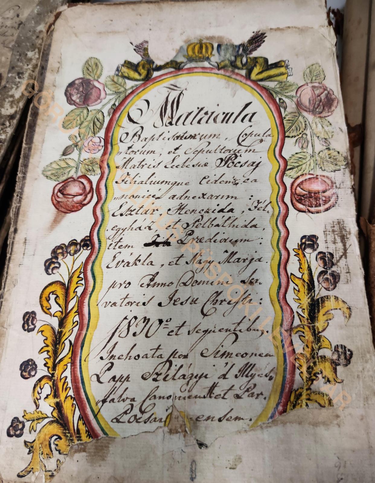 A most állományba került anyakönyvek közül azonban kiemelkedik a „kereszteltek, bérmáltak, házasultak és meghaltak” anyakönyve, melyet még Illésfalvi Papp-Szilágyi Simon kanonok, pocsaji parókus kezdett el vezetni 1830-ban. A kötet különlegessége abban rejlik, hogy az első lapja egy díszes címoldal, ami megörökíti a parókus nevét és a parókiához tartozó fíliákat, a másodikon pedig egy keresztelési jelenet ábrázolása található.