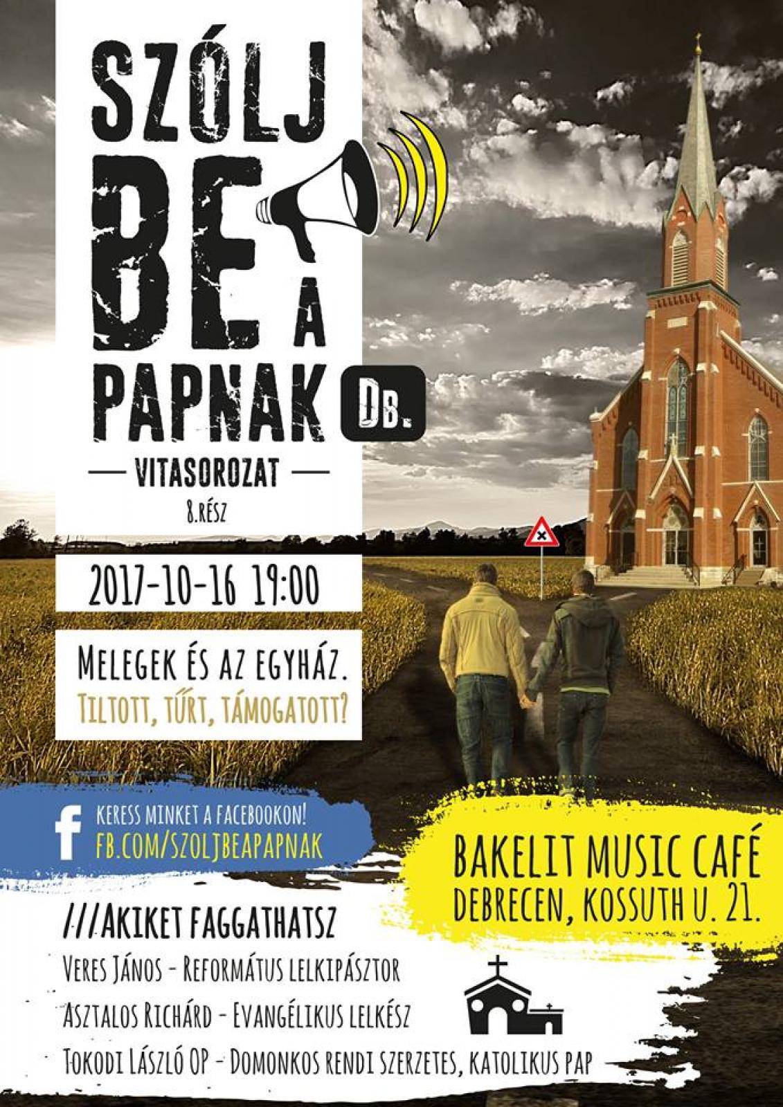 2017 év eleje óta működik a Szólj be a papnak! mozgalom. Három debreceni keresztény gyülekezet összefogásával indult el. A kezdeményezés célja egyfajta "kocsmai evangelizáció" volt, hogy alkalmat adjanak főleg olyanok számára, akik nem járnak templomba és gyülekezetbe, hogy a saját életük nagy kérdései kapcsán megismerkedhessenek a hagyományos, bevett egyházak képviselőinek (személyes) álláspontjával, és találkozzanak a hittel, Jézus Krisztus üzenetével. A rendezvények egyszerre szolgálják a hitéleti ismeretterjesztést és a vitakultúra fejlesztését, valamint fórumot biztosítanak a legaktuálisabb társadalmi kérdések széleskörű, interaktív megvitatásának. Legközelebb októberben lehet olyan témákat feszegetni, amiket eddig tabuként kezeltünk.