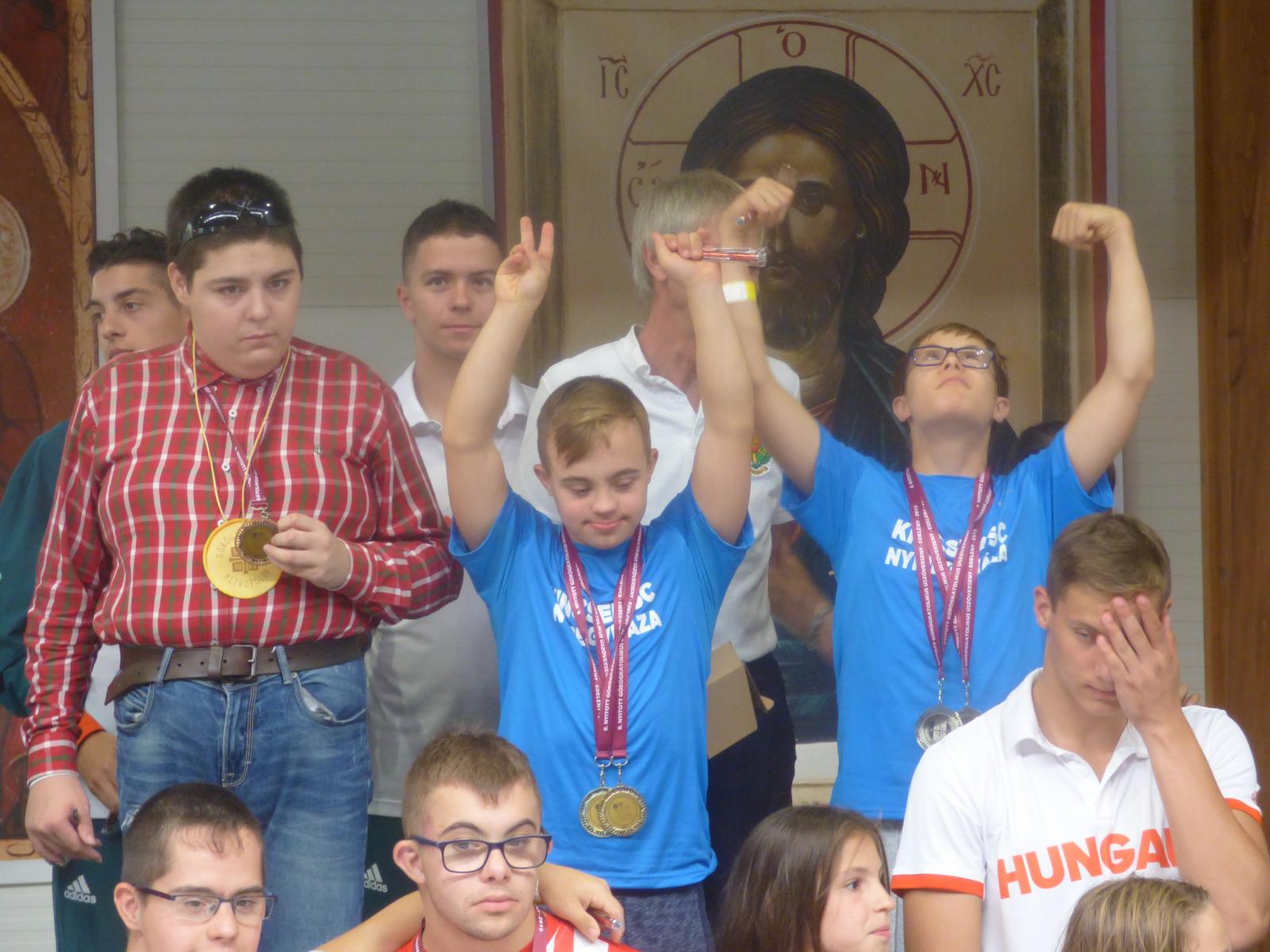 Az eredményhirdetés különlegessége az volt, hogy a fogyatékkal élő világklasszisok az ép versenyzőknek, míg az ép világbajnokok a fogyatékkal élő helyezetteknek adták át a díjakat, Orosz Atanáz megyéspüspök mellett.