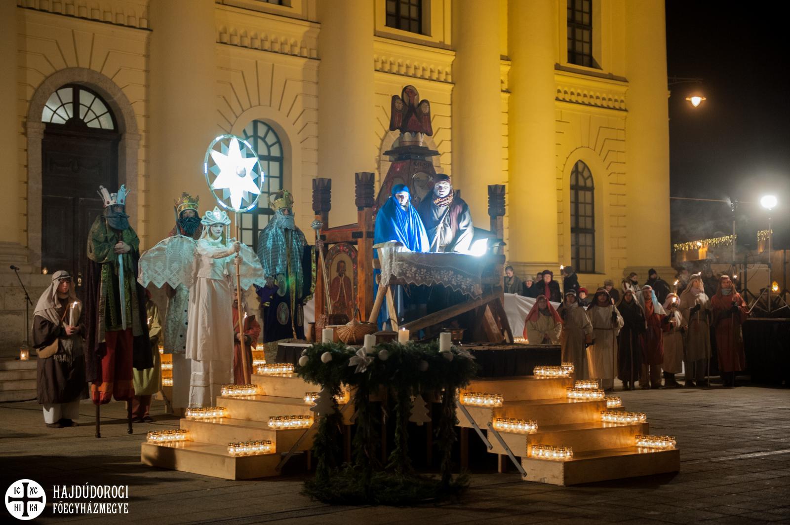 Debrecenben a negyedik adventi gyertyagyújtás vasárnapján is a Régi Városházától indult az énekes hagyományőrző menet a Nagytemplom elé. Itt a háromkirályok és a pásztorok imádását megidéző ünnepi térjátékban az ORT-IKI Báb-és Utcaszínház, a Kuckó Művésztanya, az Ady Gimnázium drámatagozatos diákjai és a Debreceni Népi Együttes táncosai vettek részt. Ezt követően a Fölszállott a páva tehetségkutatóból is ismerős Kispendely énekegyüttes és Veres Hunor moldvai dalcsokra és köszöntője örvendeztette meg az összegyűlt ünneplők szívét.
