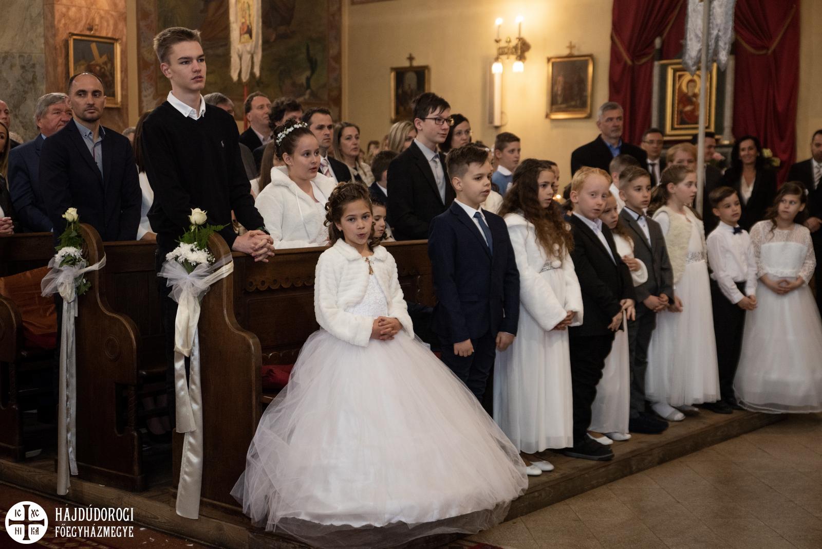 - A testét és vérét most is magunkhoz vehetjük, mert az az utolsó vacsora az az asztal, itt van velünk. Itt van a templomban, az oltáron, ami minden templomban egyfajta „terem”, „asztal”, ahol Jézus megterített az utolsó vacsorára. Az oltáron lévő kenyér és bor az Eucharisztia, Jézus teste és vére, ami bizonyítja, hogy bár a sír üres, de Jézus velünk van, a világ végezetéig – magyarázta az elsőáldozóknak a főpásztor.