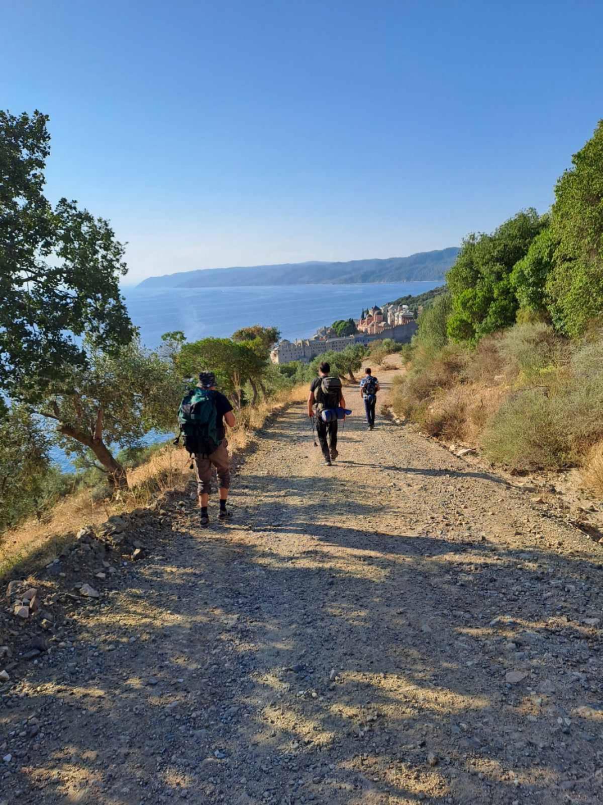 Először a híres Vatopedi monostort látogatták meg. Onnan három és fél órás hegyi túrával jutottak el a Pantokrátor-monostorhoz, a harmadik napon a fővároson, Karyesen keresztül ismét egy három és fél órás túrával a félsziget déli részére, a Xenophontos-monostorba érkeztek.