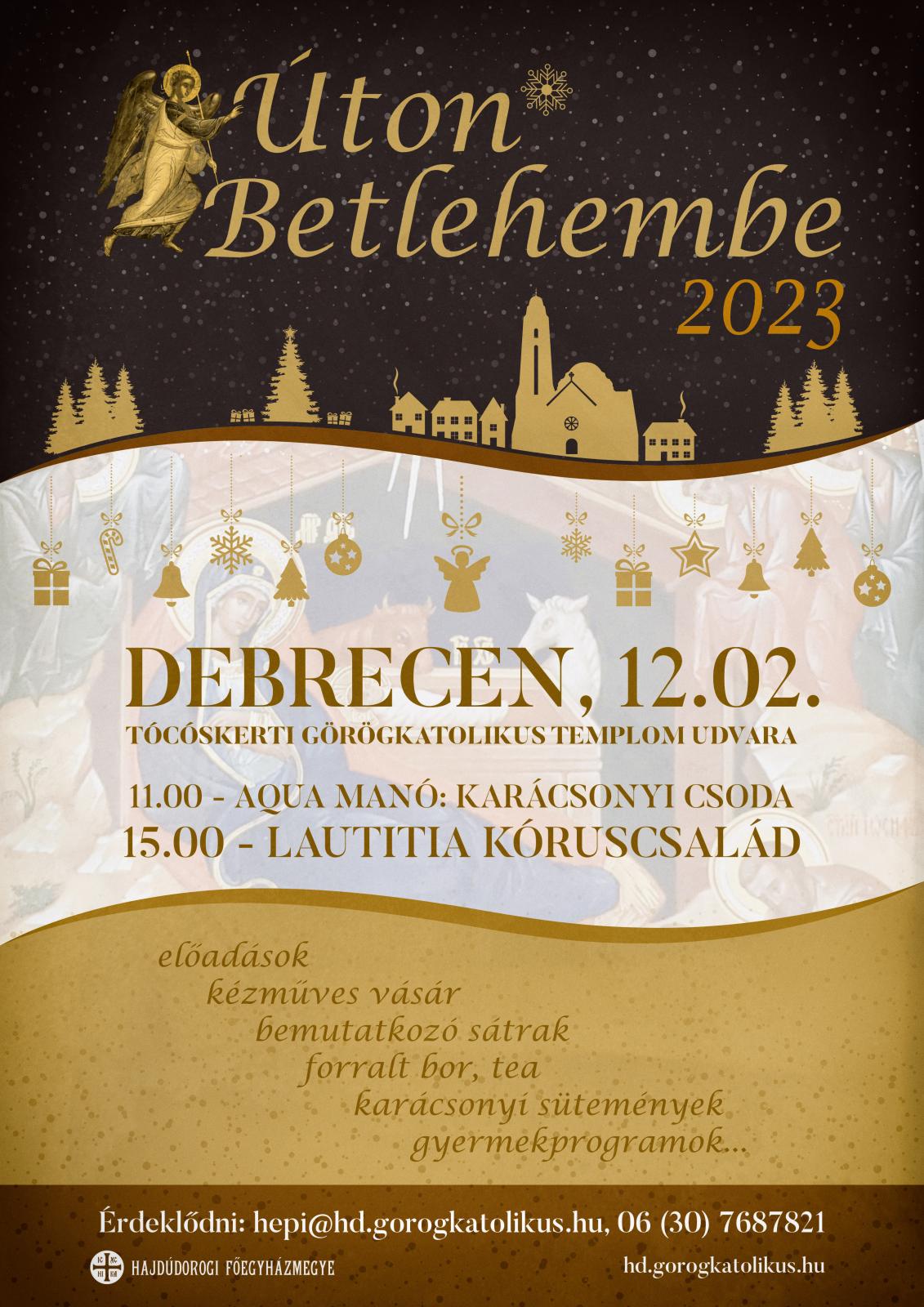 Az Úton Betlehembe elnevezésű program házigazdái ismét a tócóskertiek lesznek. A nap folyamán fellép a Lautitia Kórus és az Aqua Manó Party. A részletes programot itt olvashatják: