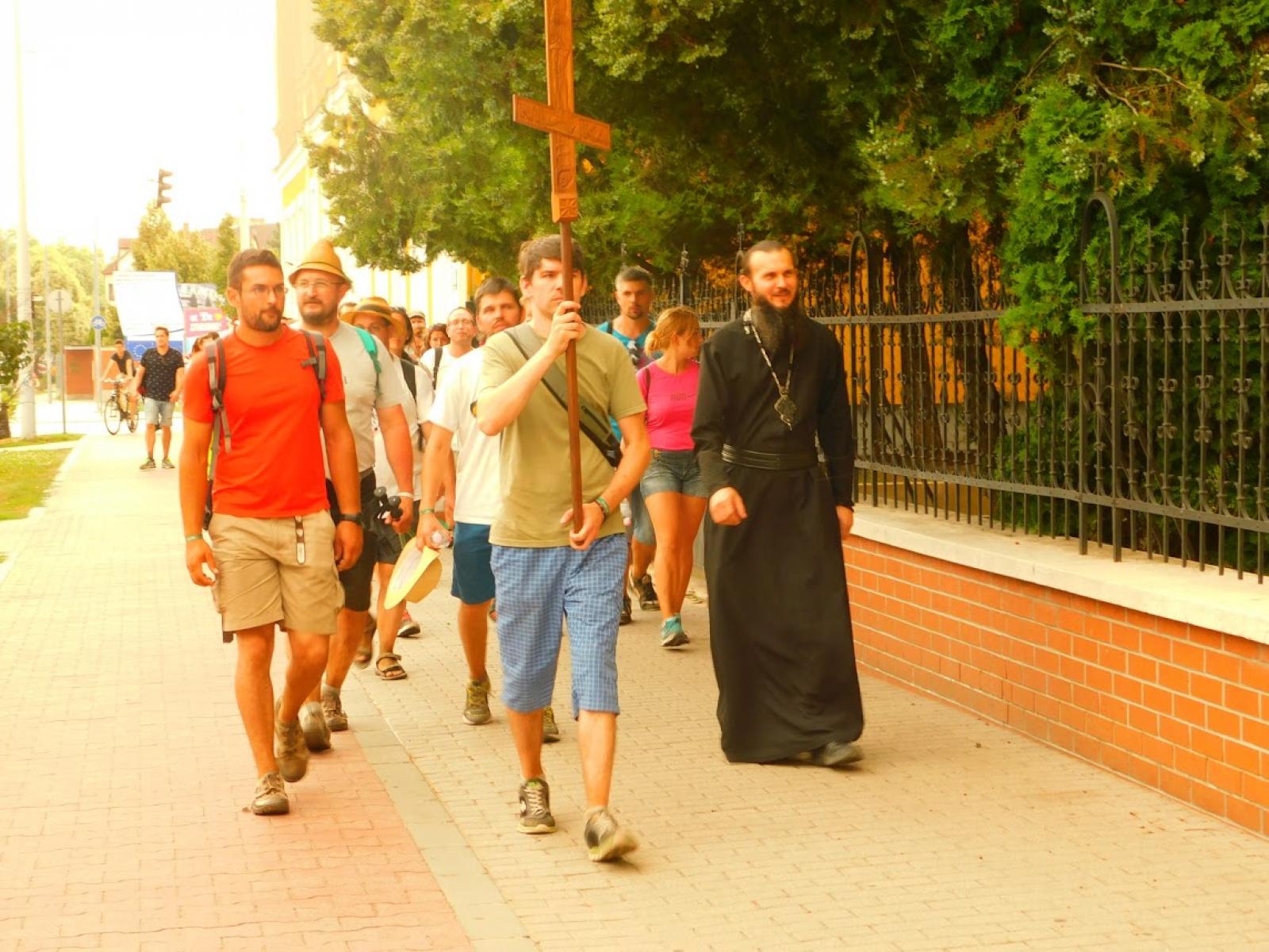A késő délutáni órákban Nyíregyháza közelében, Vargabokorban megérkezett Obbágy László atya gyümölcsküldeménye, és csatlakozott zarándoklatunkhoz Ábel kormányzó atya, aki bevezetett minket a nyíregyházi székesegyházba. A vecsernyén „a lélek ugyan kész, de a test erőtlen” (Mt 26,41) lelkületével vettünk részt. Az apostoli kormányzó atya elmélkedésében a jövő reménységének nevezte a fiatalokat és hitünk minél mélyebb megélésre buzdított. Másnap reggel a szokott módon, a fáradtság ellenére az utrenyén a fiatalok szép számmal vettek részt, majd Ábel atya áldásával ismét útra keltünk. Következő állomásunkon Oroson, atyai szeretettel várt bennünket Mosolygó Marcell atya, és friss gyümölccsel vendégelte meg a csapatot – Páll Miklós atya meglepetés péksüteményeivel együtt.