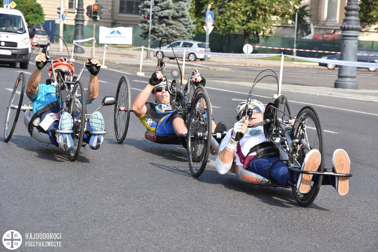 A kerekes székemet "tankernek" becéztük, mert házilag összeeszkábált, nehéz járgány volt. Ezzel a kocsival vágtam neki. A verseny ötnapos. Az első szakasz a Bécs és Sopron közötti 90 kilométer, a második a leghosszabb: a Sopron-Győr távolság a maga 120 kilométerével, a harmadik - a Győr és Tata közötti hatvan kilométer - már barátságosnak tűnik. A leginkább embert próbáló a Vértes meredek kaptatóinak sora - ez a 65 km-es, Tata-Budakeszi szakasz. Az utolsó etap, a Budakeszi és a Hősök tere közötti félmaratoni már afféle örömfutás. Egyedüli kerekes székesként indultam a versenyen. Huszonkét óra körüli idővel teljesítettem a távot (a legjobb időm azóta 19 óra tizenöt perc).