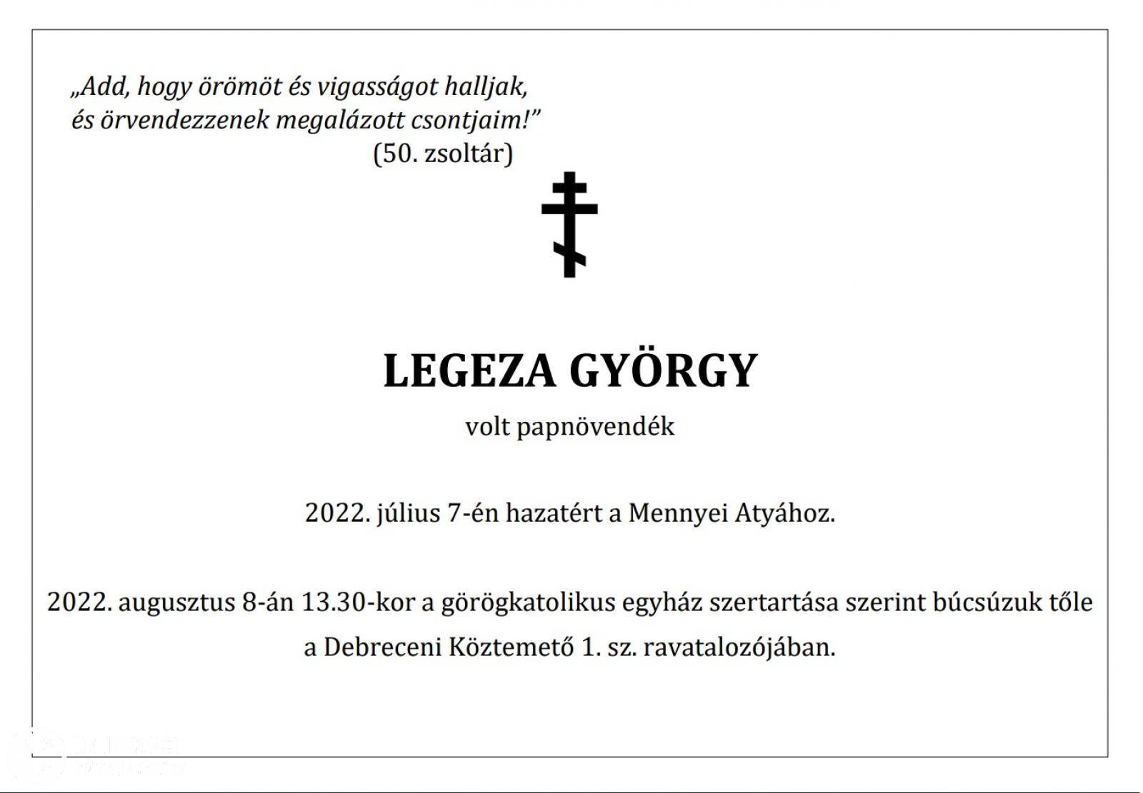 Augusztus 8-án Fülöp metropolita és Atanáz püspök atyák által vezetett szertartással helyezték örök nyugalomra Legeza György testét, aki július 7-én adta vissza halhatatlan lelkét Teremtőjének.