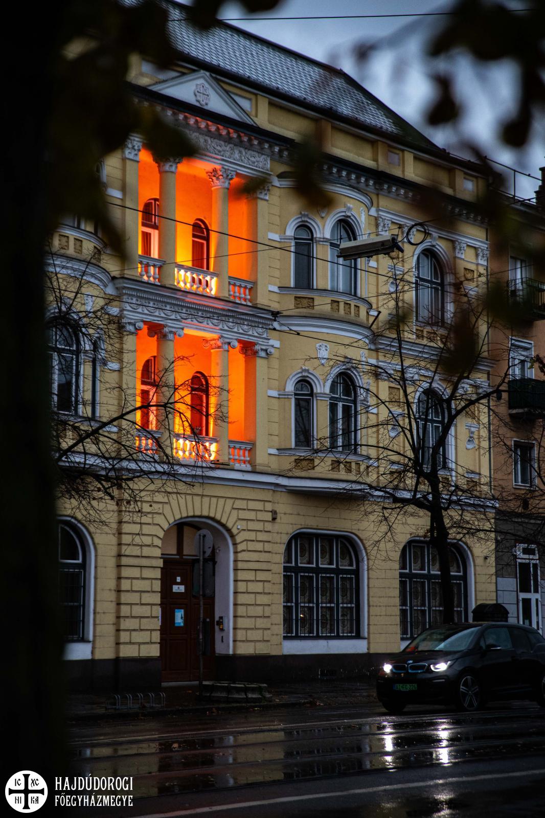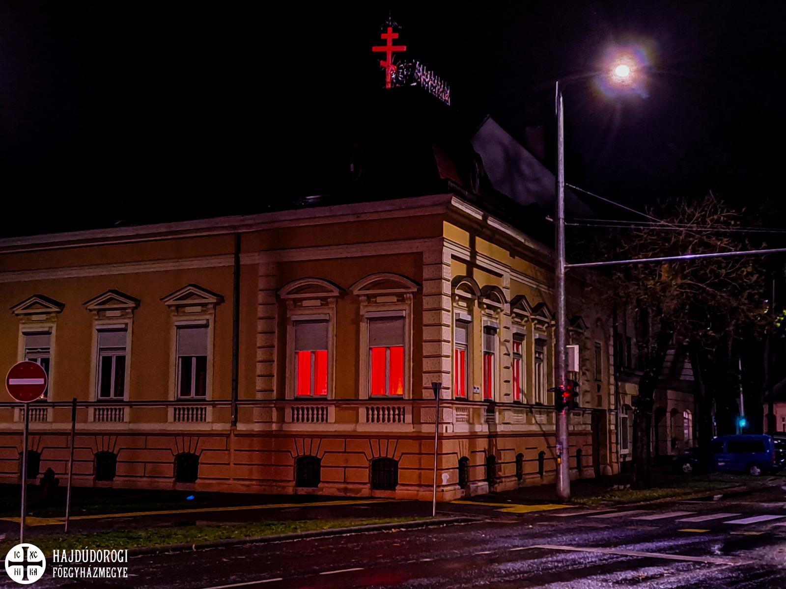 Görögkatolikus egyházunk is csatlakozott a kezdeményezéshez, ezen a napon sötétedés után vörös fény világítja meg a metropólia debreceni székhelyét.