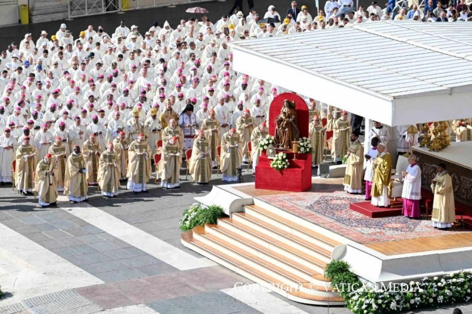 Testvéreim, csodálatos ünnepnap ez egész Olaszország, az egész Egyház, az egész világ számára! Mielőtt elkezdenénk a szentté avatás ünnepélyes szertartását, szeretnélek üdvözölni mindnyájatokat, szeretnék szólni néhány szót mindnyájatokhoz, mert bár ez a szertartás nagyon komoly, ugyanakkor ez egy nagyon örömteli nap is! Szeretném külön is üdvözölni a sok fiatalt, gyermeket, akik eljöttek erre a szentmisére! Igazán az Úr áldása, hogy veletek lehetünk, akik különféle országokból jöttetek. Ez valóban a hit ajándéka, melyet meg akarunk osztani.
