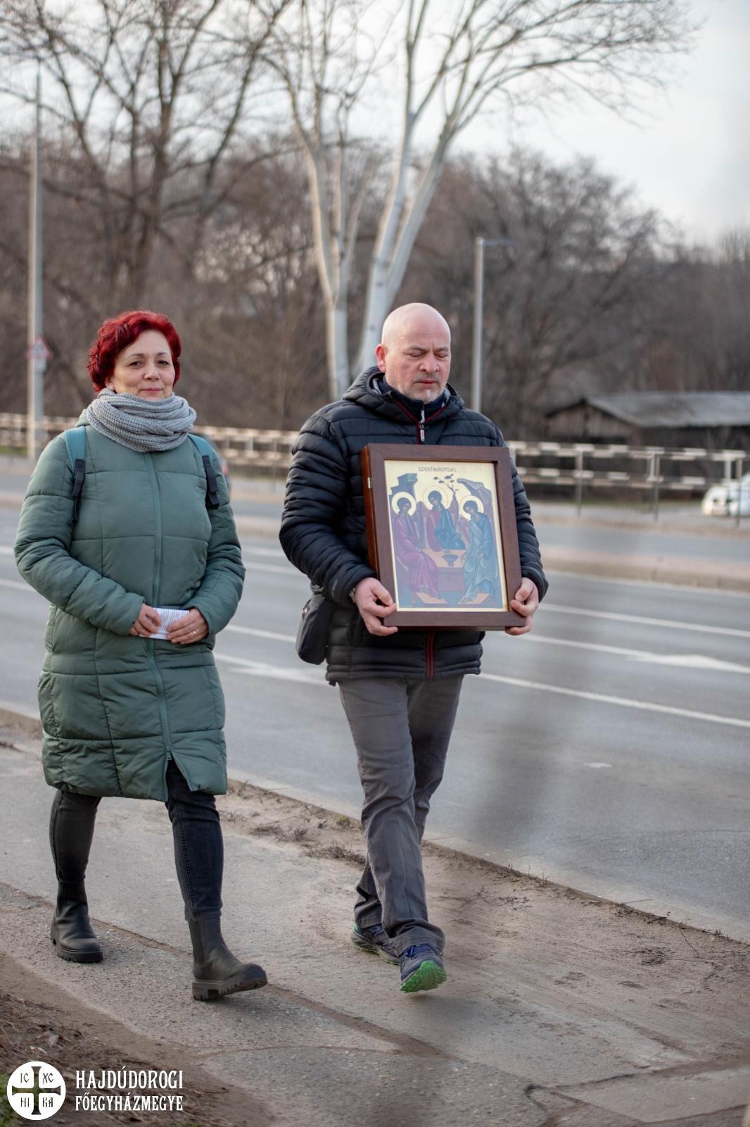 Február 15-én, délután 2-kor indulnak a zarándokok a csapókerti görögkatolikus templomtól. Az országot járó Szentháromság ikon Görögországból származik, és Hajdúdorogtól indulva már eddig is több templomban járt, hétről hétre tovább adva a következő közösségnek. Most a csapókerti és a hajdúsámsoni hívek fognak össze, és adják, illetve fogadják ezt a különleges, szentévi ikont.