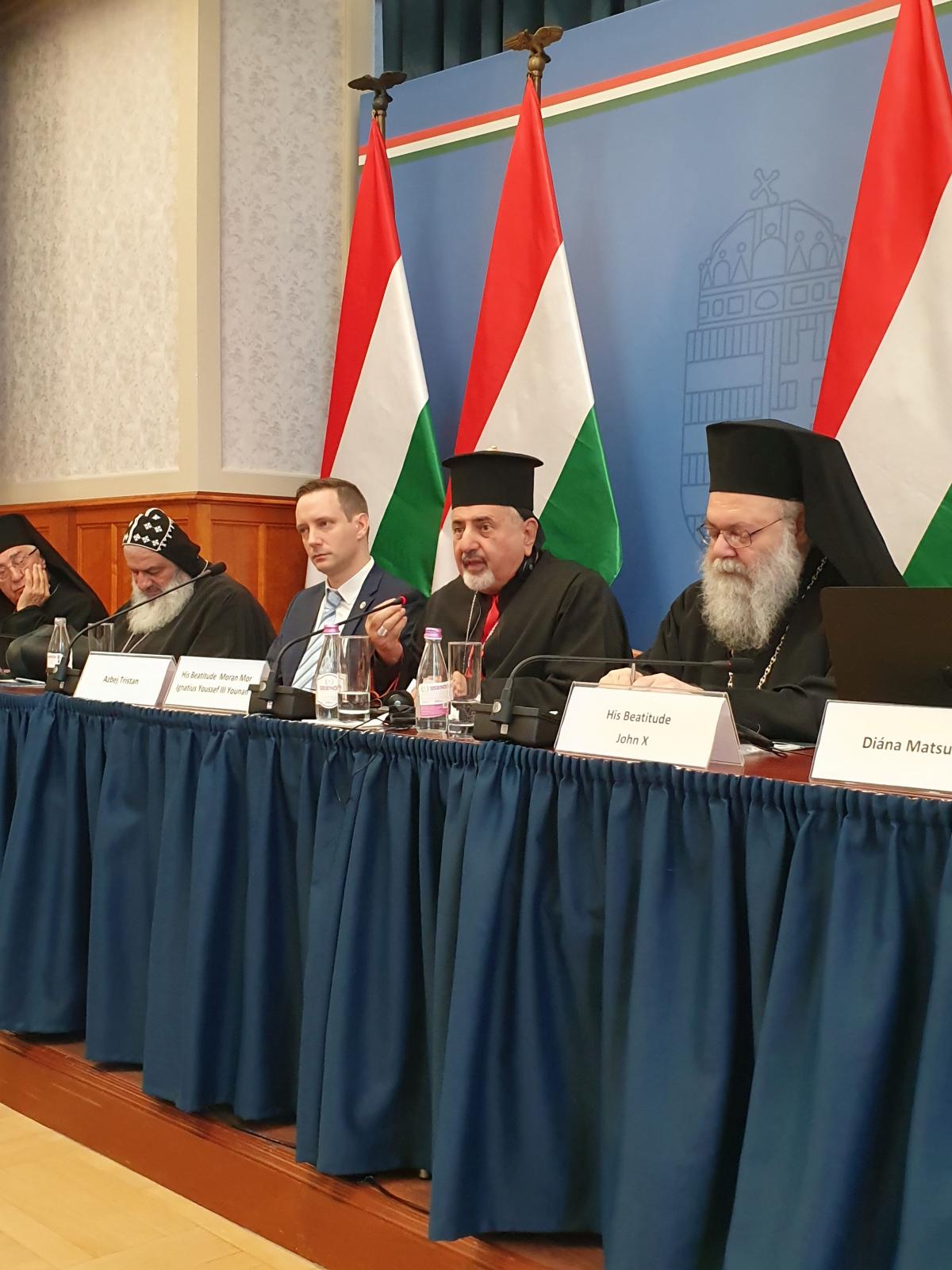 Szijjártó Péter külügyminiszter által megnyitott zárt körű konferencián kiemelt vendégként jelen volt: II. Efrém Ignác szír ortodox pátriárka, X. János antiochiai görög pátriárka, I. József Abszi melkita görögkatolikus pátriárka és III. József Ignác szír katolikus pátriárka. A találkozón Erdő Péter bíboros urat Mohos Gábor segédpüspök képviselte, és természetesen meghívást kapott a három magyarországi keleti katolikus püspök is: Fülöp metropolita, Atanáz és Ábel püspök atyák.