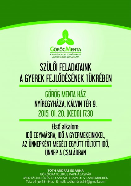 Szülői feladataink a gyerek fejlődésének tükrében címmel indul előadássorozat Nyíregyházán a Menta Házban január 20-tól.
