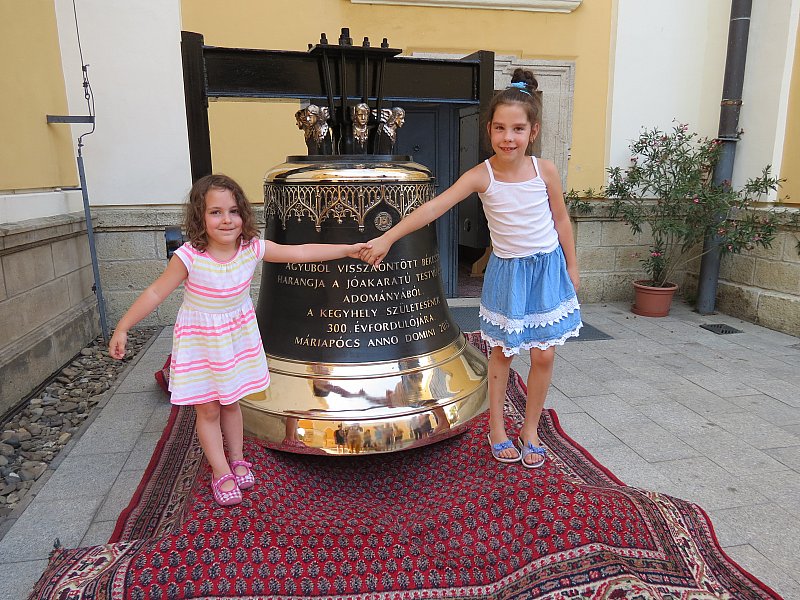 Megérkezett Máriapócsra a Békesség harangja, mely most a templomajtónál várja, hogy - megszentelését követően - végleges helyére, a déli templomtoronyba kerüljön a vasárnapi Nagyboldogasszony-napi búcsún.