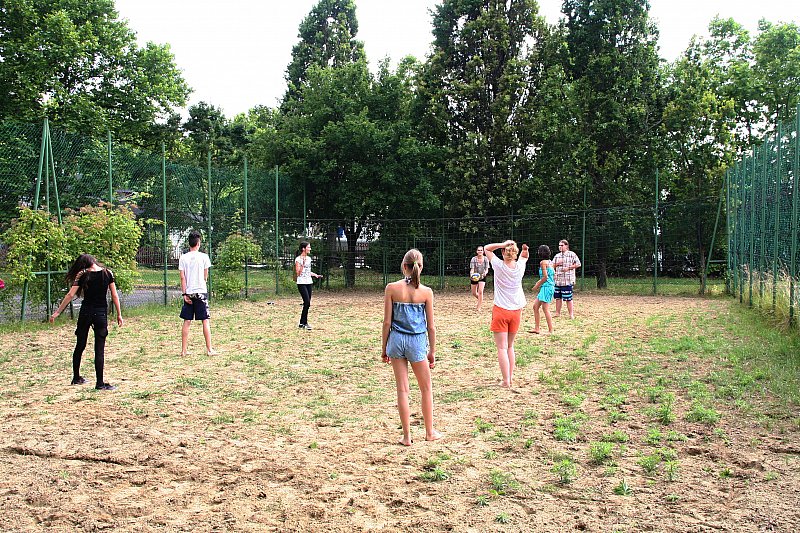 A délután folyamán a balatoni fürdőzés mellett focimeccsen szurkolhattunk, a fiatalok röplabdajátékát csodálhattuk meg, nézhettük a trambulinon ugráló kicsiket és élvezhettük a nap megnövekedő erejét. Késő délután közösen tornázhattunk a parton.