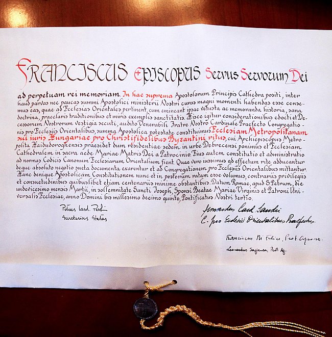 De spiritali itinere nec non regimine Christifidelium Hungariae ritus Byzantini Nosmet Ipsi, Qui pergrave Successoris Petri munus exercemus, valde solliciti, aptiores etiam eis ecclesiasticas structuras instituere volumus.