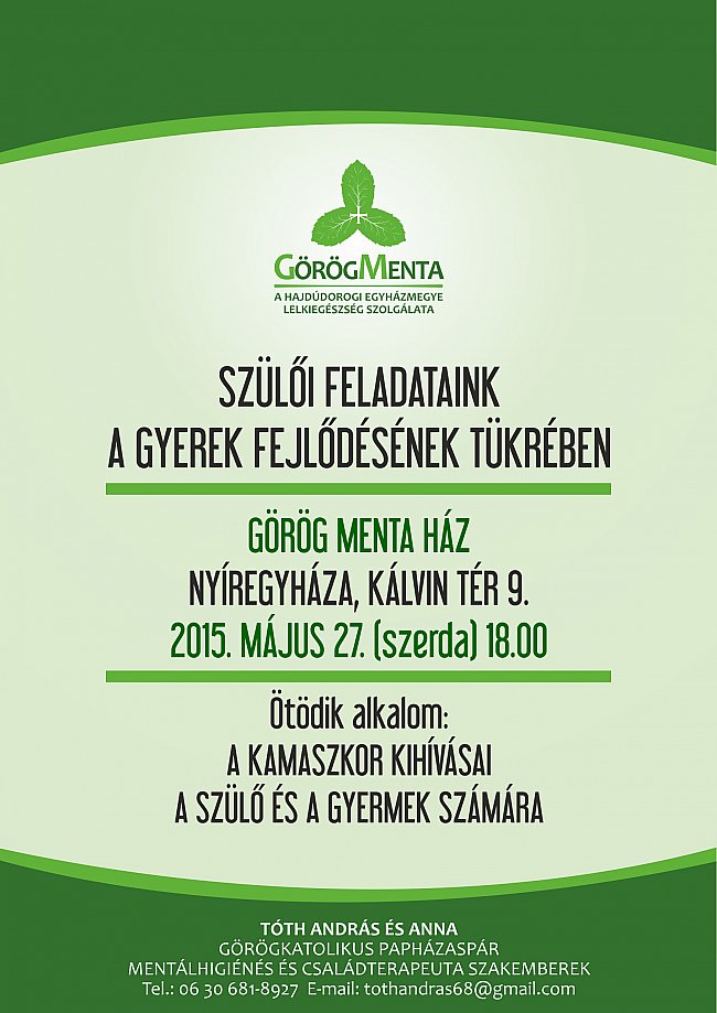 Sok szeretettel várunk minden érdeklődőt előadássorozatunk (Szülői feladataink a gyermek fejlődésének tükrében) következő alkalmára!