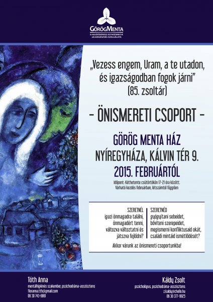 2015. február 2-án (hétfőn), a megszokott időpontban (délután 4-től 7-ig) tartjuk a Jézus-ima összejövetelünket a Menta Házban (Kálvin tér 9.).