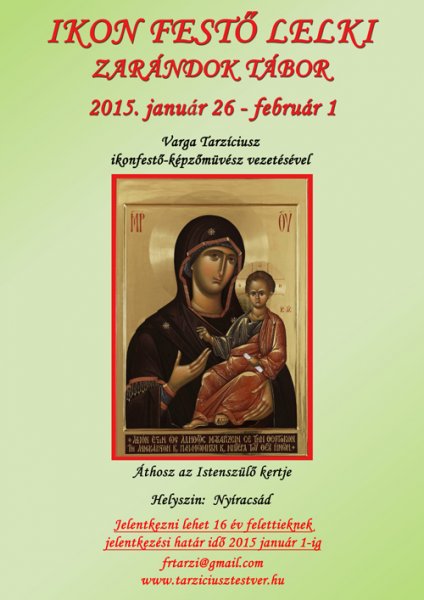 Ikonfestő zarándoktábor lesz Nyíracsádon 2015. január 26. és február 1. között "Áthosz, az Istenszülő virágoskertje" címmel.
