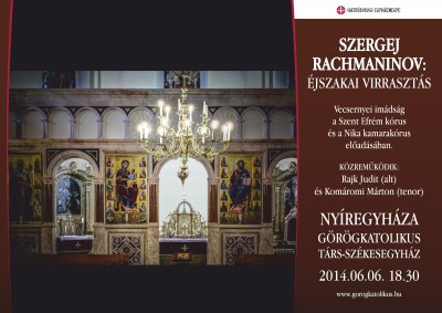 Európa egyházi zenéjének egyik gyöngyszemét, az orosz kóruskultúra egyedülállóan szép alkotását hallgathatják meg mindazok, akik 2014. június 6-án, Pünkösd előtti péntek este fél 7-kor ellátogatnak Nyíregyházán, a görögkatolikus társ-székesegyházba, a NIKA Kamarakórus és a Szent Efrém Kórus különleges hang-áhítatára.