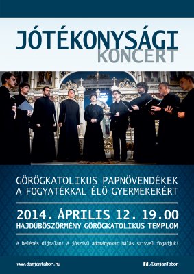 A görögkatolikus papnövendékekből álló Szent Damján kórus ad jótékonysági koncertet április 12-én 19 órától a hajdúböszörményi görögkatolikus templomban.