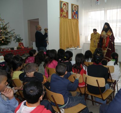 Fülöp püspök atya hosszú útról, egyenesen Rómából érkezett Pomázra, a Mosolygó család negyedik gyermekének, Szófiának a keresztelésére. Nagy izgalmak előzték meg a jelentős eseményt: vajon milyen lesz az alámerítés? – hiszen egyikünk sem látott még ilyet... Feldíszítettük a kápolnát a szép szertartásra, nagy gonddal melegítettük a keresztelőmedencébe szükséges vizet.