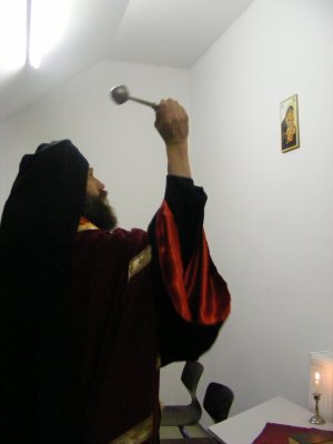 Nagyon jól emlékszem arra, hogy Fülöp püspök atyánk, amikor tavaly Aranyszájú Szent János ünnepének vigíliáján velünk virrasztott, azt mondta: „büszkék lehetnek azok, akiknek templomát az ő tiszteletére szentelték.” Az idei virrasztás során már tudatosan is ilyen lélekállapotban készültünk vasárnapra. Ennek köszönhetően egyházközségünk apraja-nagyja együtt ünnepelt 2013. november 17-én. Pontosabban ünnepelt volna, ha befértünk volna a kápolnába. A kivetítésnek köszönhetően azonban mindenki be tudott kapcsolódni a szertartásba.