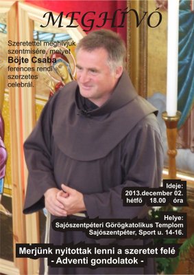 2013. december 2-án Sajószentpéren a görögkatolikus templomba látogat Böjte Csaba atya.