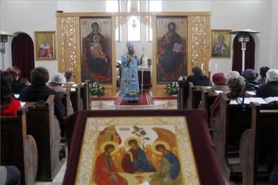 Orosz Atanáz, a görög katolikus egyház miskolci apostoli exarchátusának püspöke a hit évének zárása alkalmából Miskolcon, a szirmai templomban 2013. november 23-án liturgiát ünnepelt.