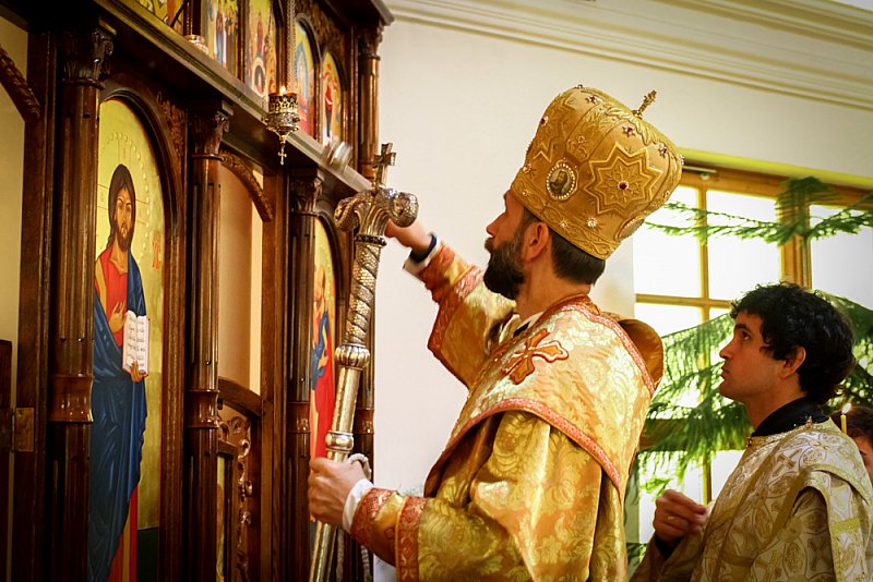 Fényes hét szombatján nagy megtiszteltetés érte egyházközségünket, Kocsis Fülöp metropolita végezte a vecsernyét.