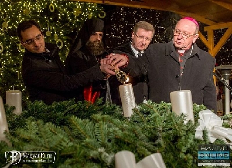 Ökumenikus adventi gyertyagyújtás Debrecen főterén
