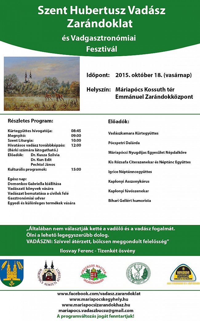 Szent Hubertusz Vadász Zarándoklat és Vadgasztronómiai Fesztivál