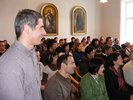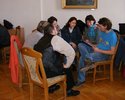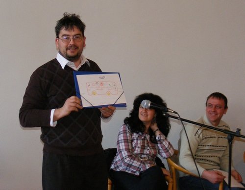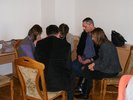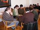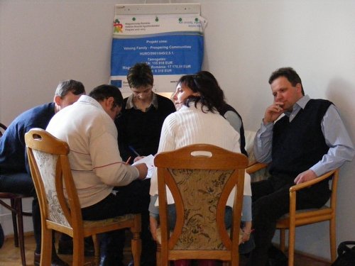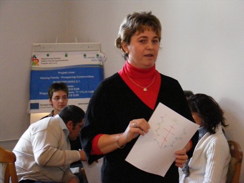 A Szatmári Római Katolikus Püspökség konferenciatermében szombat délelőtt tizenegy órától zajlott program igazán családiasra sikerült, hiszen a korábban kialakult kapcsolatok, a közös cél és a pozitív hozzáállás már az érkezésnél egy szeretetközösség valóságának jeleit adták. A szentségimádás után ez a bemutatkozó rajzokban is megmutatkozott, hiszen bár kiscsoportokra szakadva külön-külön kellett megfogalmazzák önmaguk és társaik számára, családcsoportjuk címerét - jelezve az erősségeiket, pozitív és negatív jellemzőiket -, a rajzok bemutatásakor sok közös vonás jelent meg. A csoportok Isten-követése, a keresztény életélmény fontossága úgy a család, mint a benne kiteljesedő egyén számára mindannyiuk vezérgondolata volt.