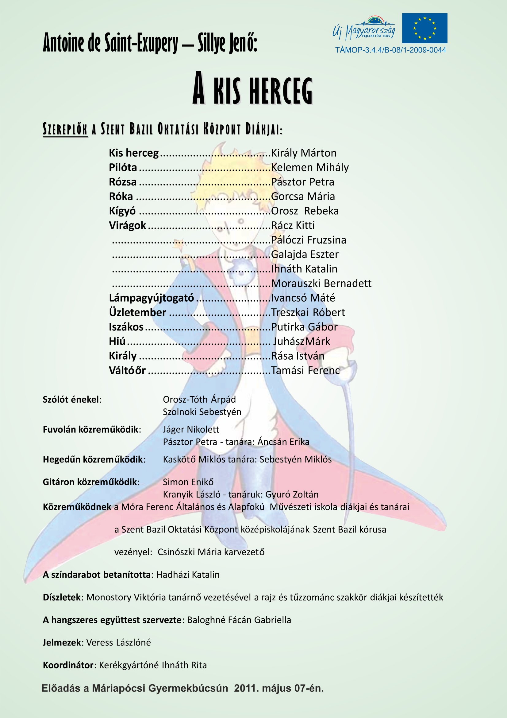 Antoine de Saint-Exupéry A kis herceg című előadását láthajták a Máriapócsi Gyermekbúcsú résztvevői, a Szent Bazil Oktatási Központ diákjainak előadásában.
