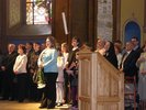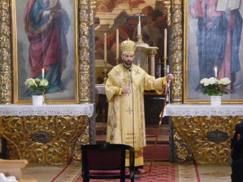 Kocsis Fülöp püspök úr ünnepi prédikációját húsvéti görögkatolikus köszönésünkkel kezdte: „Krisztus föltámadt! Valóban föltámadt!”. Majd rögtön azzal folytatta, hogy itt akár be is fejezhetné a szentbeszédet, hiszen ezzel a felkiáltással felelünk hittel Isten szerető meghívására, ez hitünk alapja. Ebből a mondatból, sugárzik a hitünk, ezért kell megtanítani gyermekeinknek is ezt a köszönést, köszöntést. Életünk meghatározója, középpontja a Feltámadt Krisztus, mert az élet forrásán - Jézuson, nem uralkodhatott a halál. A mi életünk is út a feltámadás felé.