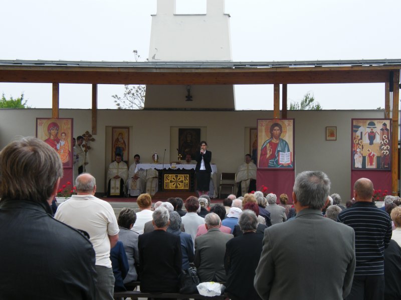 Az anyák tiszteletére Májer Zsuzsanna énekelt a Szent Liturgia után, a körmenet előtt.