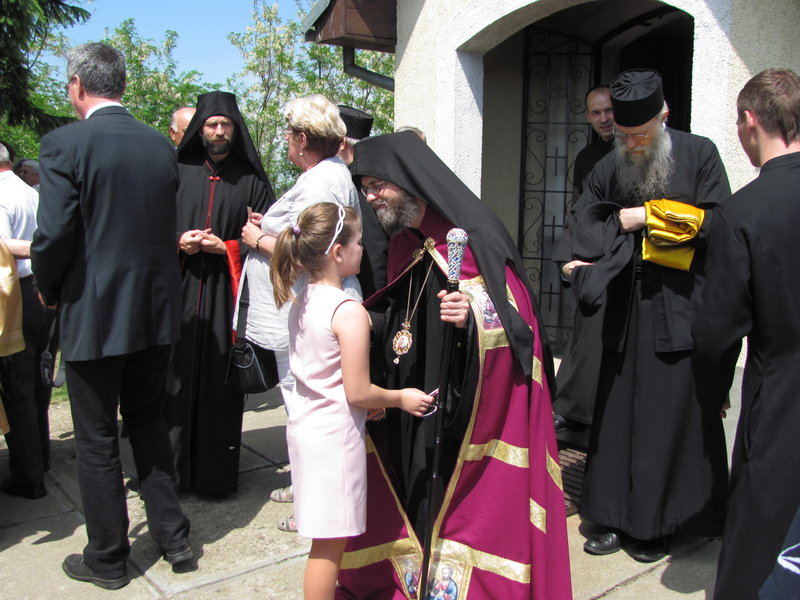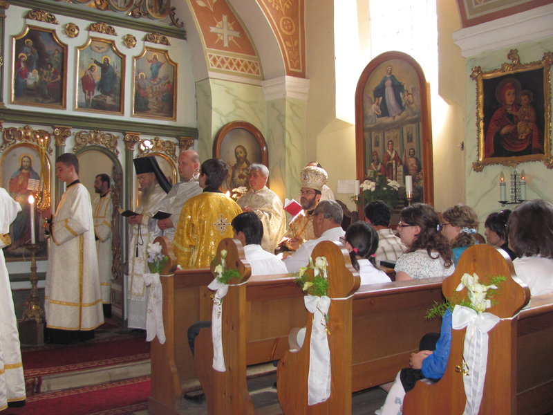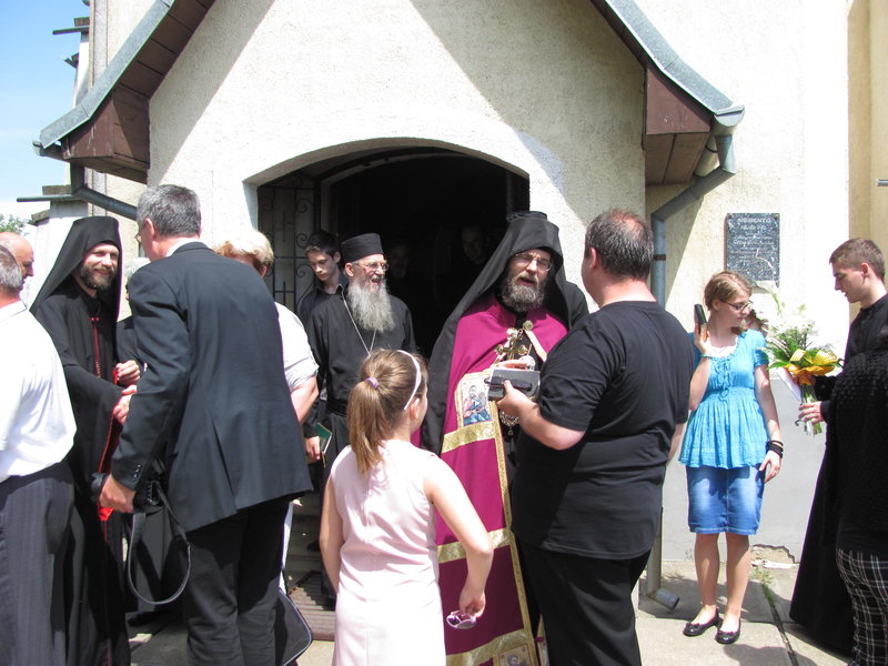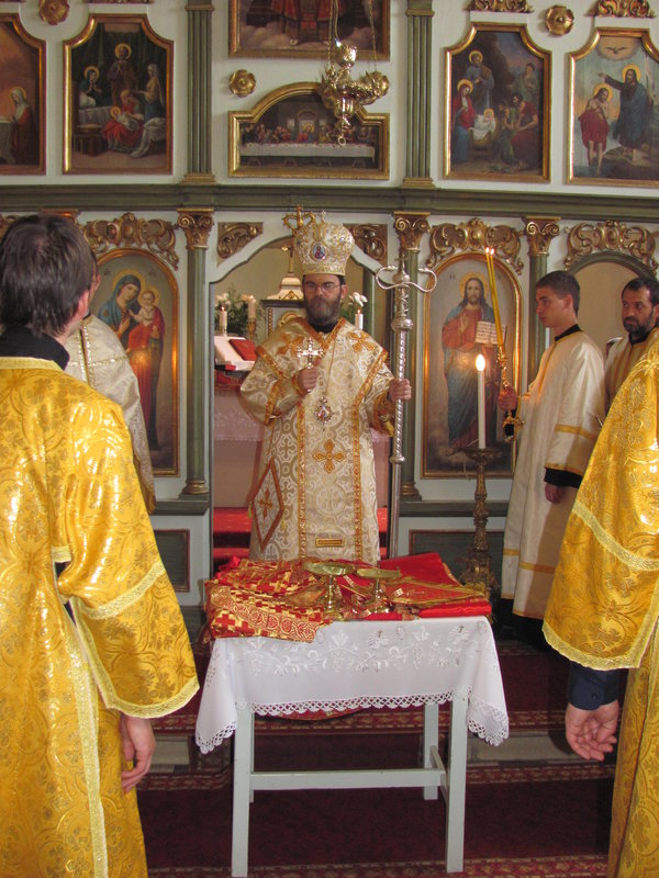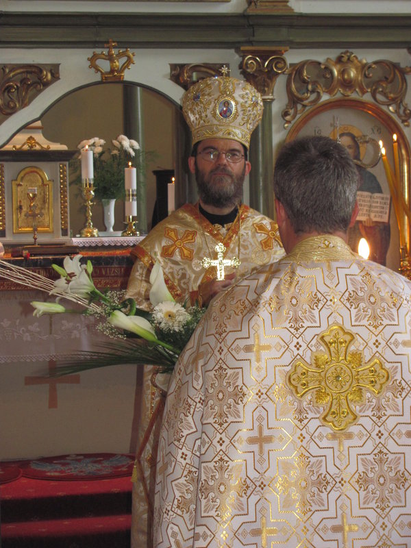 A mai nap délelőttjén tartotta a Miskolci Apostoli Exarchátus újszentelt püspök-exarchája, Atanáz atya, első miséjét Dámócon. Azt a kicsi zempléni falut választotta első Liturgiájának színhelyéül, ahol Fülöp püspökkel éltek együtt egy évtizeden át szerzetesi közösségben. A választás nagyon megtisztelő volt a közösség számára, akik jelenlétükkel is bizonyították ezt, hiszen teljesen megtöltötték a templomot. De nem csak ők vettek részt a Liturgián, hanem a környező településekről és a határos Szlovákiából is érkeztek vendégek, barátok az eseményre. Az új püspök előző napi trónfoglaló beszédére utalva kihangsúlyozta, hogy nyitnunk kell a másik ember felé, legyen az más vallású,más nemzetiségű, szlovák vagy cigány. „A közös ünneplésünk az Isten országának jelenléte.”- mondta. Arra is kitért beszédében, hogy fontos mondatokat üzen nekünk ma Krisztus az evangéliumban, mégpedig azt, hogy olyan imádókat keres magának, akik lélekben és igazságban imádják Őt.